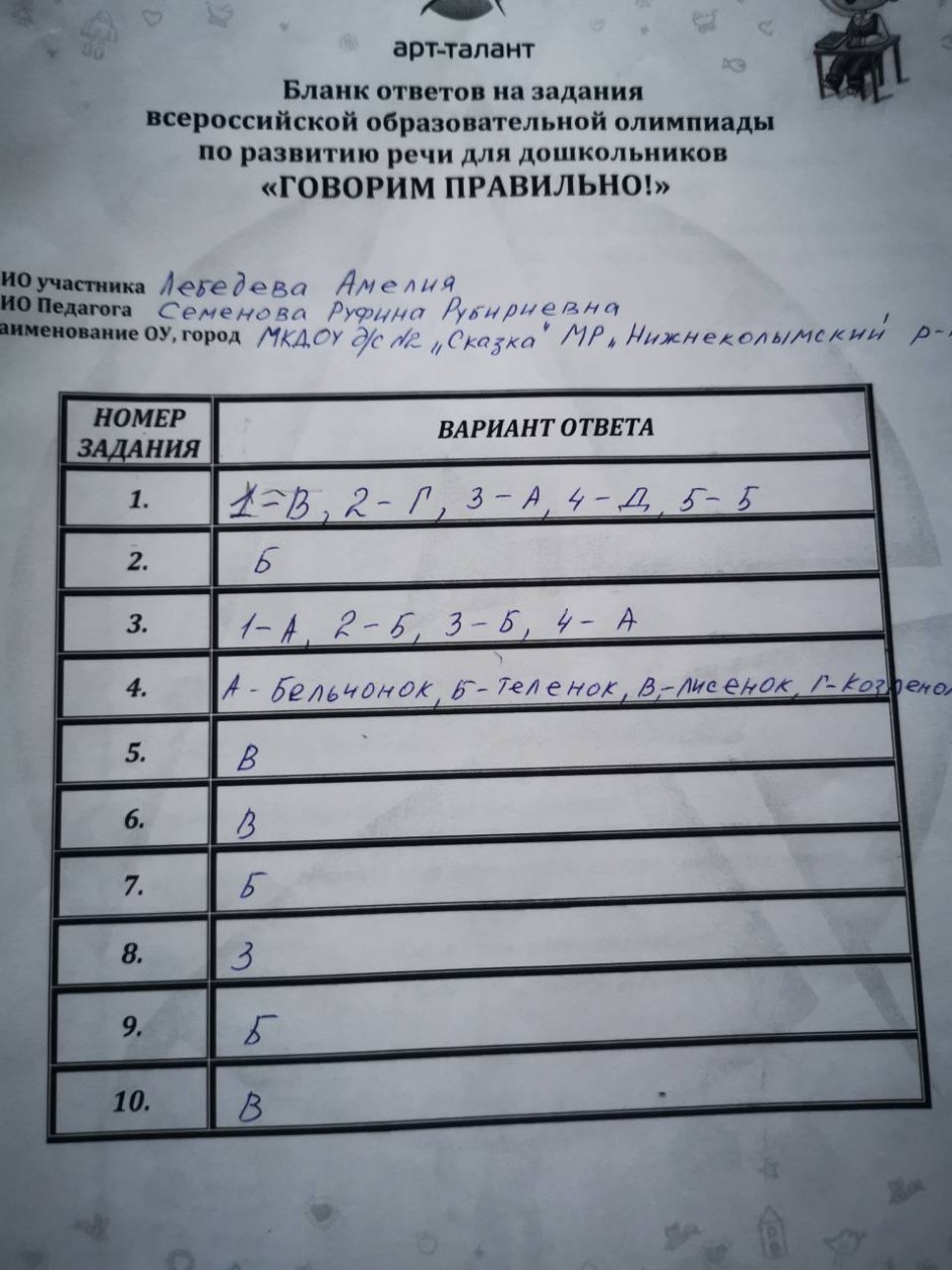 Лебедева Амелия Александровна, МКДОУ д/с №2 "Сказка" МР "Нижнеколымский район"