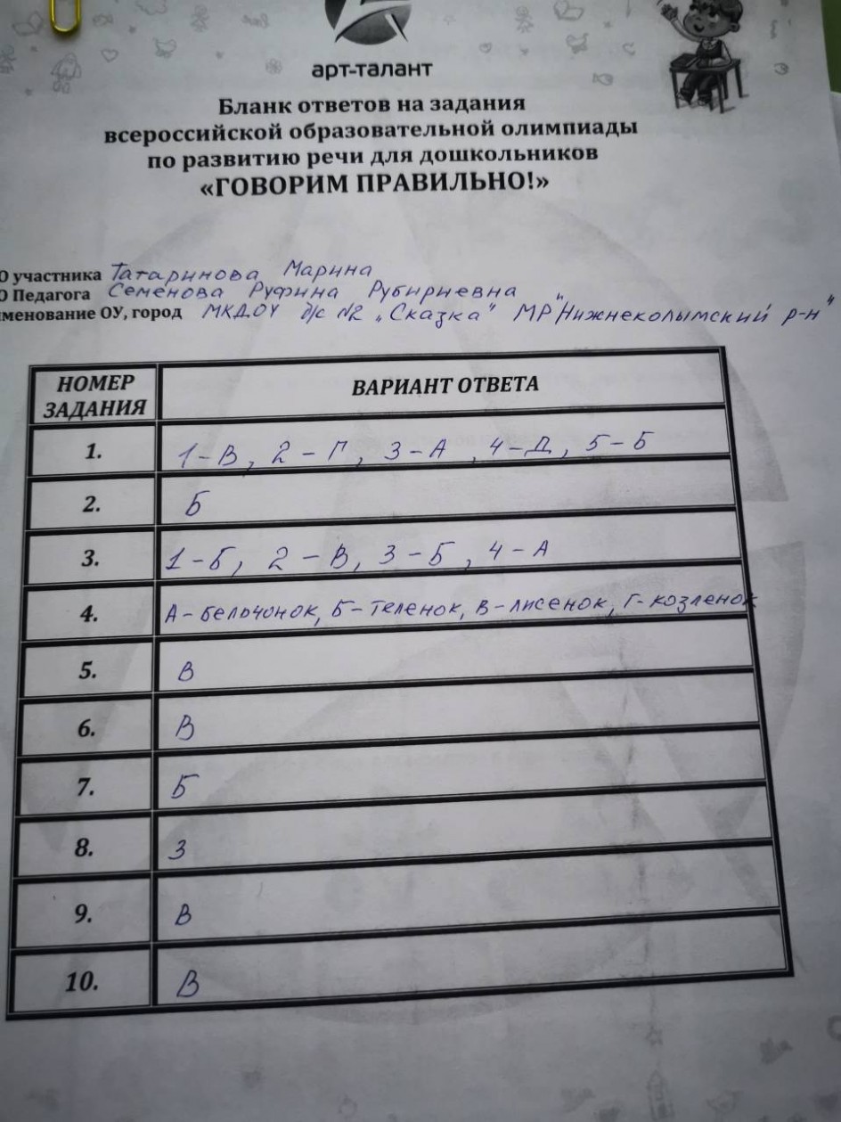 Татаринова Марина Валентиновна, МКДОУ д/с №2 "Сказка" МР "Нижнеколымский район"