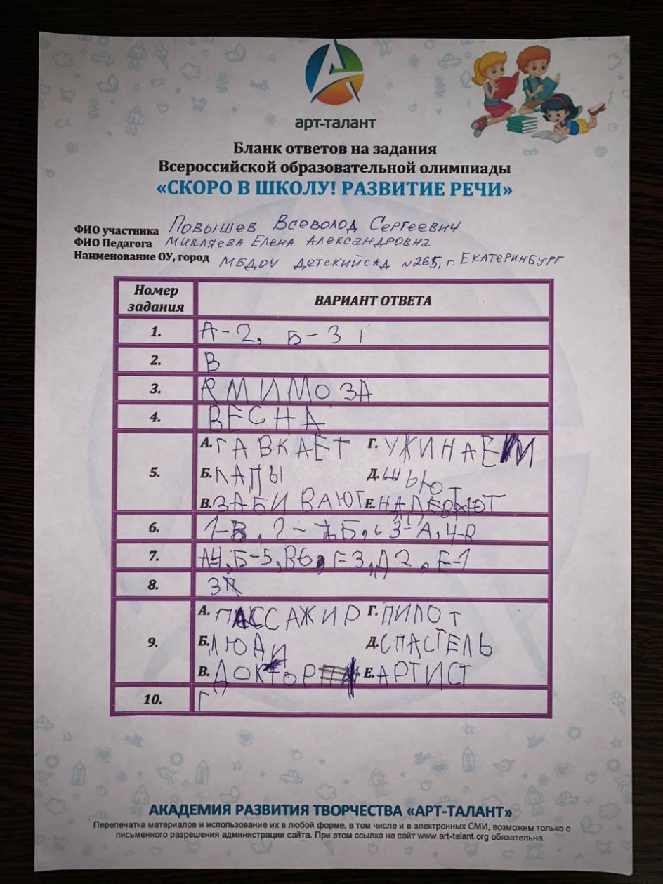 Повышев Всеволод Сергеевич, МБДОУ детский сад № 265, г. Екатеринбург