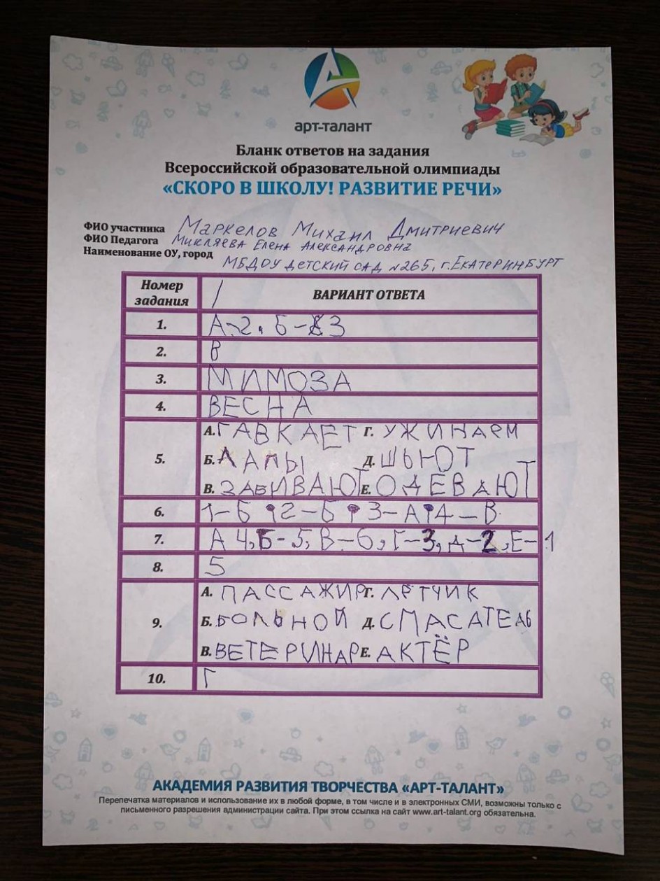 Маркелов Михаил Дмитриевич, МБДОУ детский сад № 265, г. Екатеринбург