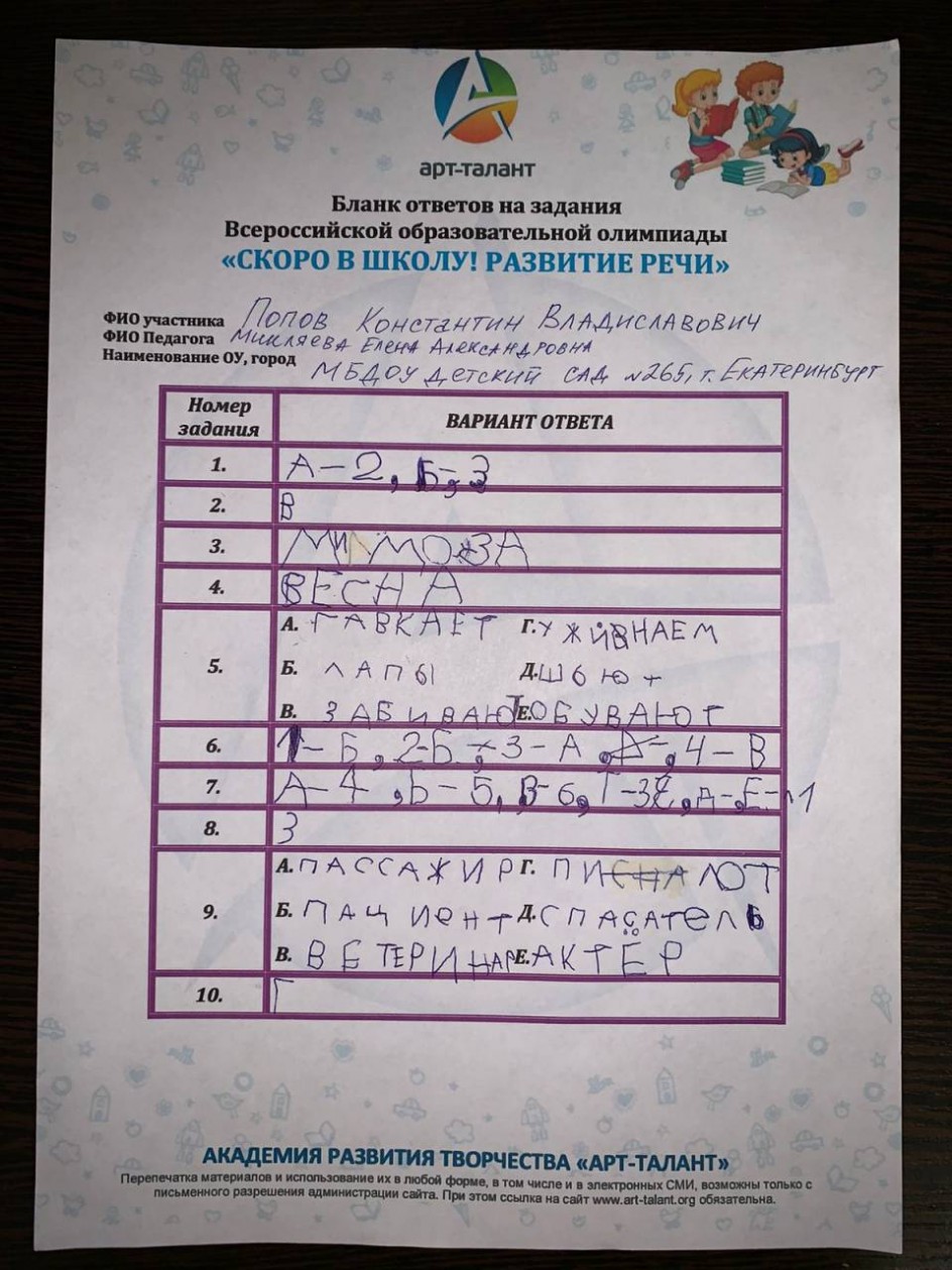 Попов Константин Владиславович, МБДОУ детский сад № 265, г. Екатеринбург