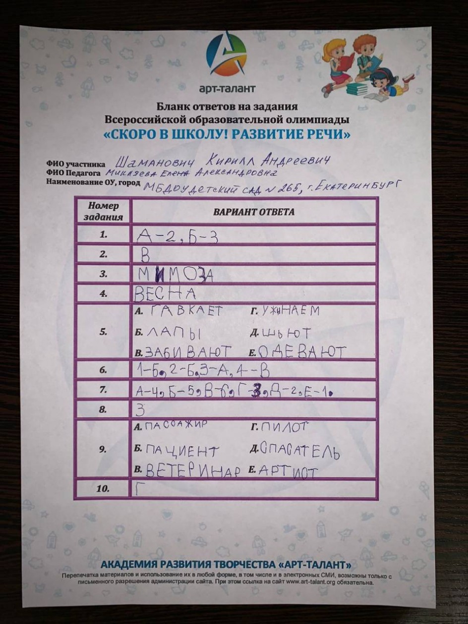 Шаманович Кирилл Андреевич, МБДОУ детский сад № 265, г. Екатеринбург