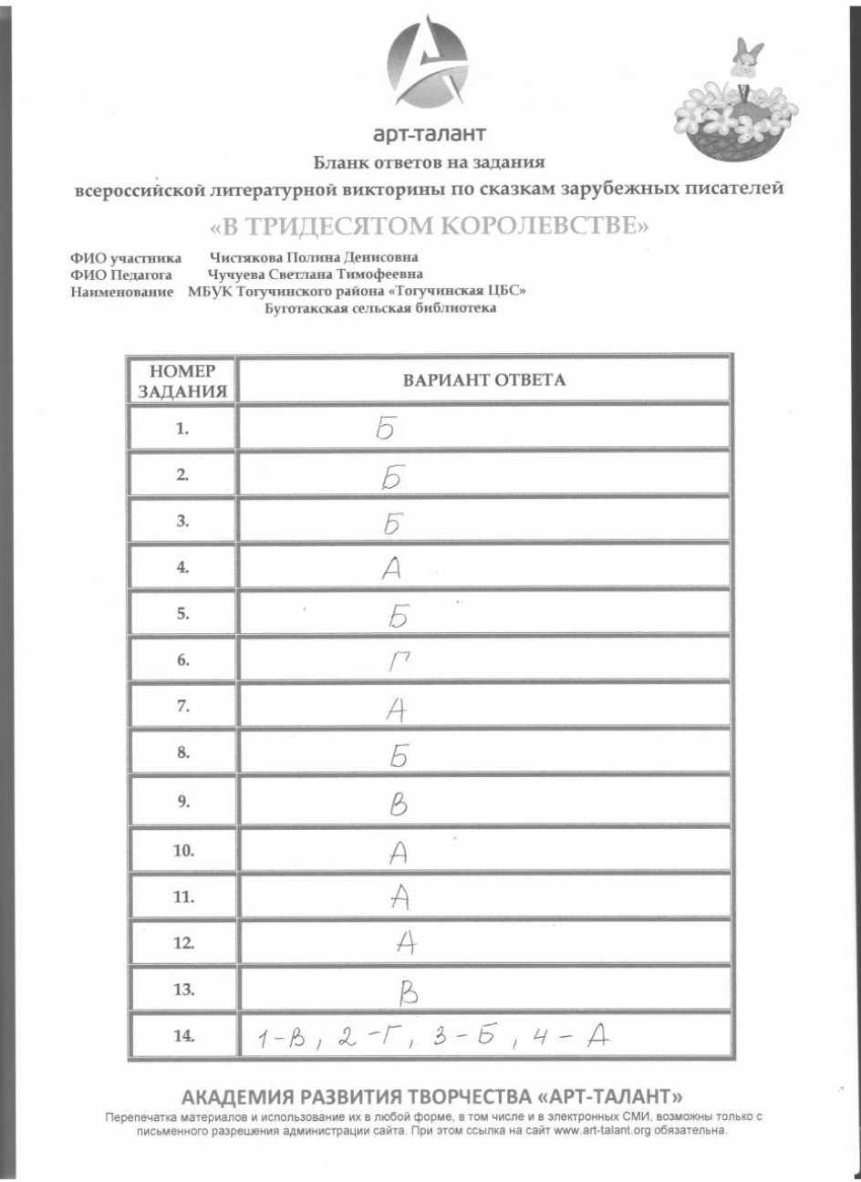 Чистякова Полина Денисовна, МБУК Тогучинского района "Тогучинская ЦБС" Буготакская сельская библиотека