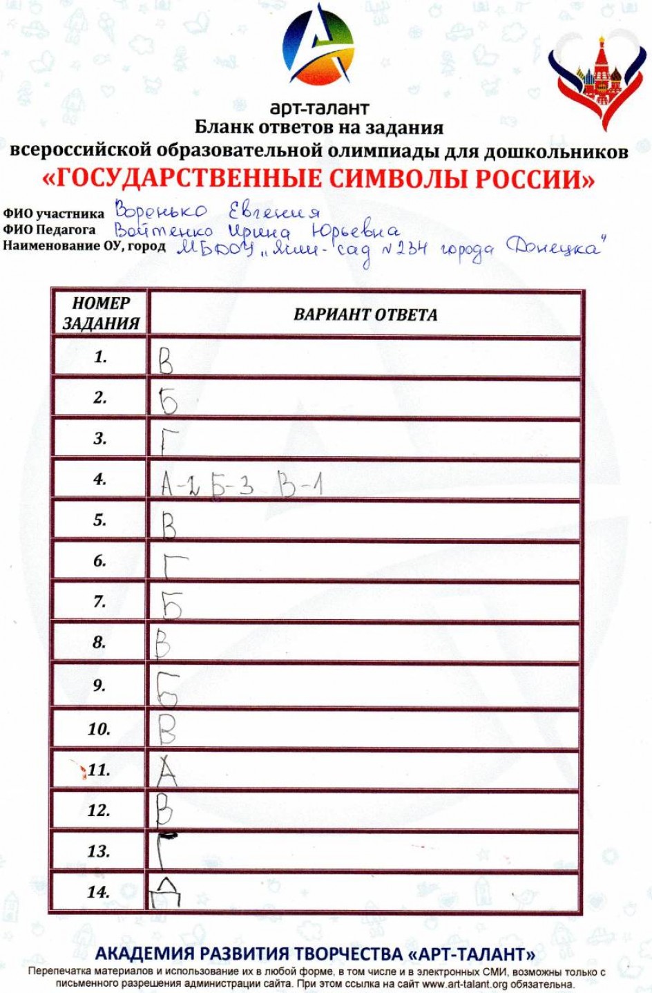Воронько Евгения, МБДОУ "Ясли-сад комбинированного типа №234 города Донецка"