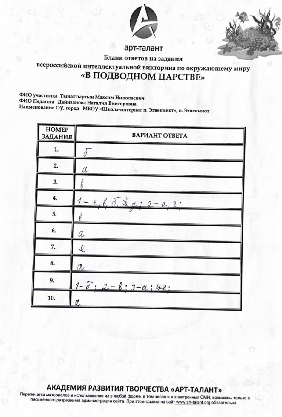Тынатгыргын Максим Николаевич, МБОУ «Школа-интернат п. Эгвекинот»