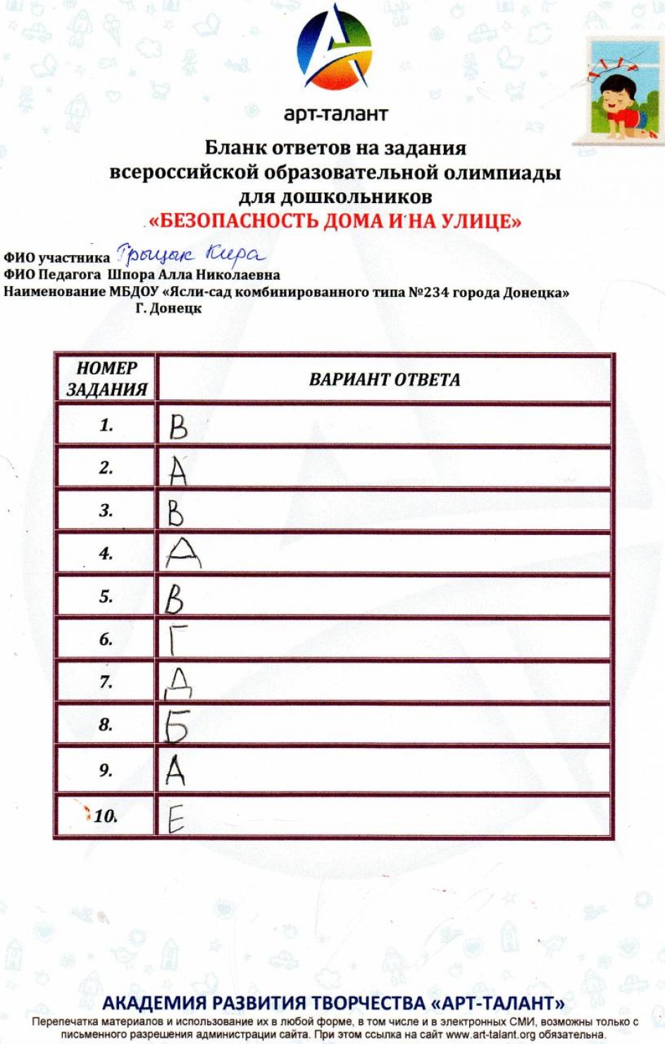 Грыцык Кира, МБДОУ "Ясли-сад комбинированного типа №234 города Донецка"