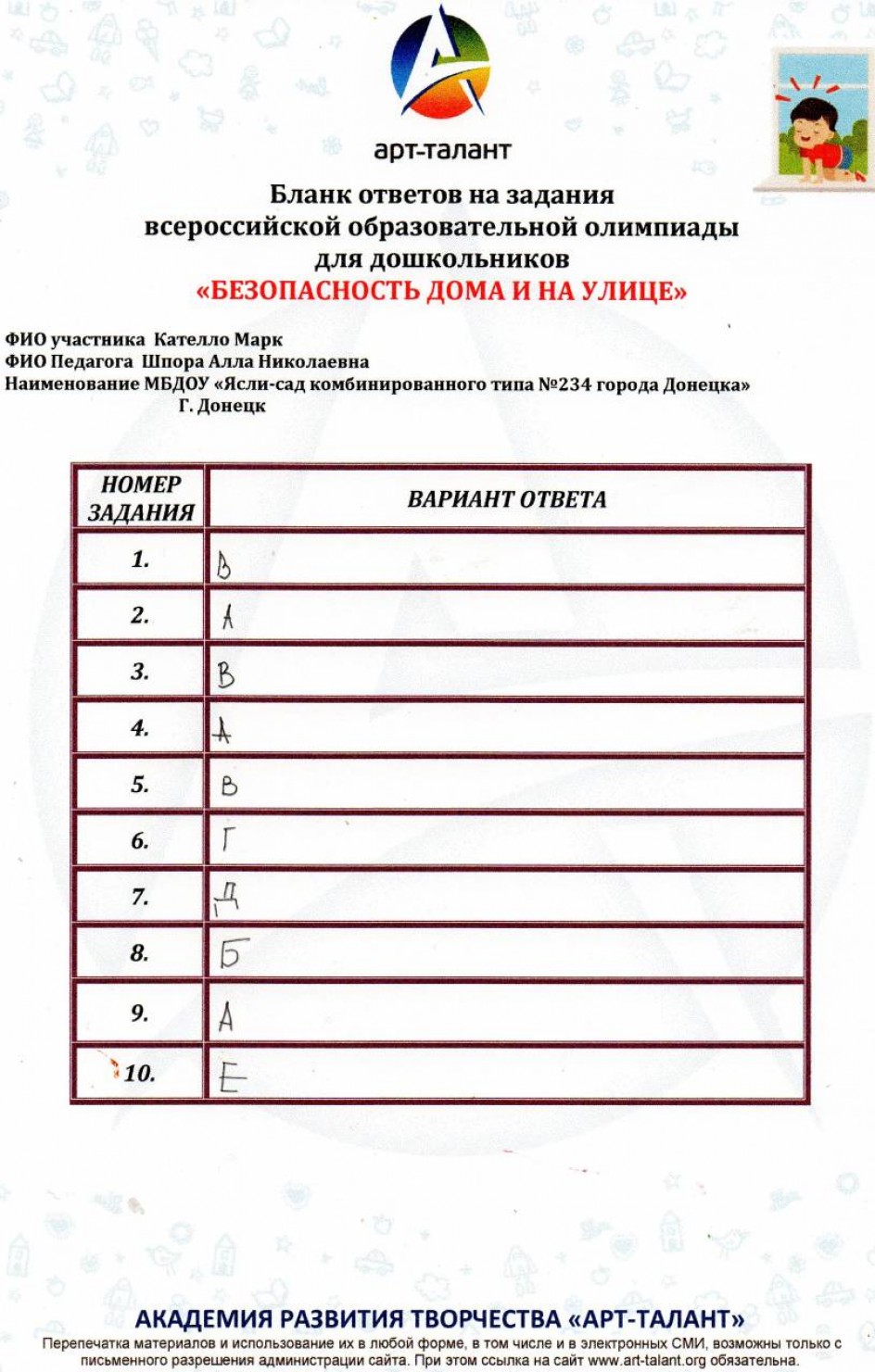 Кателло Марк, МБДОУ "Ясли-сад комбинированного типа №234 города Донецка"