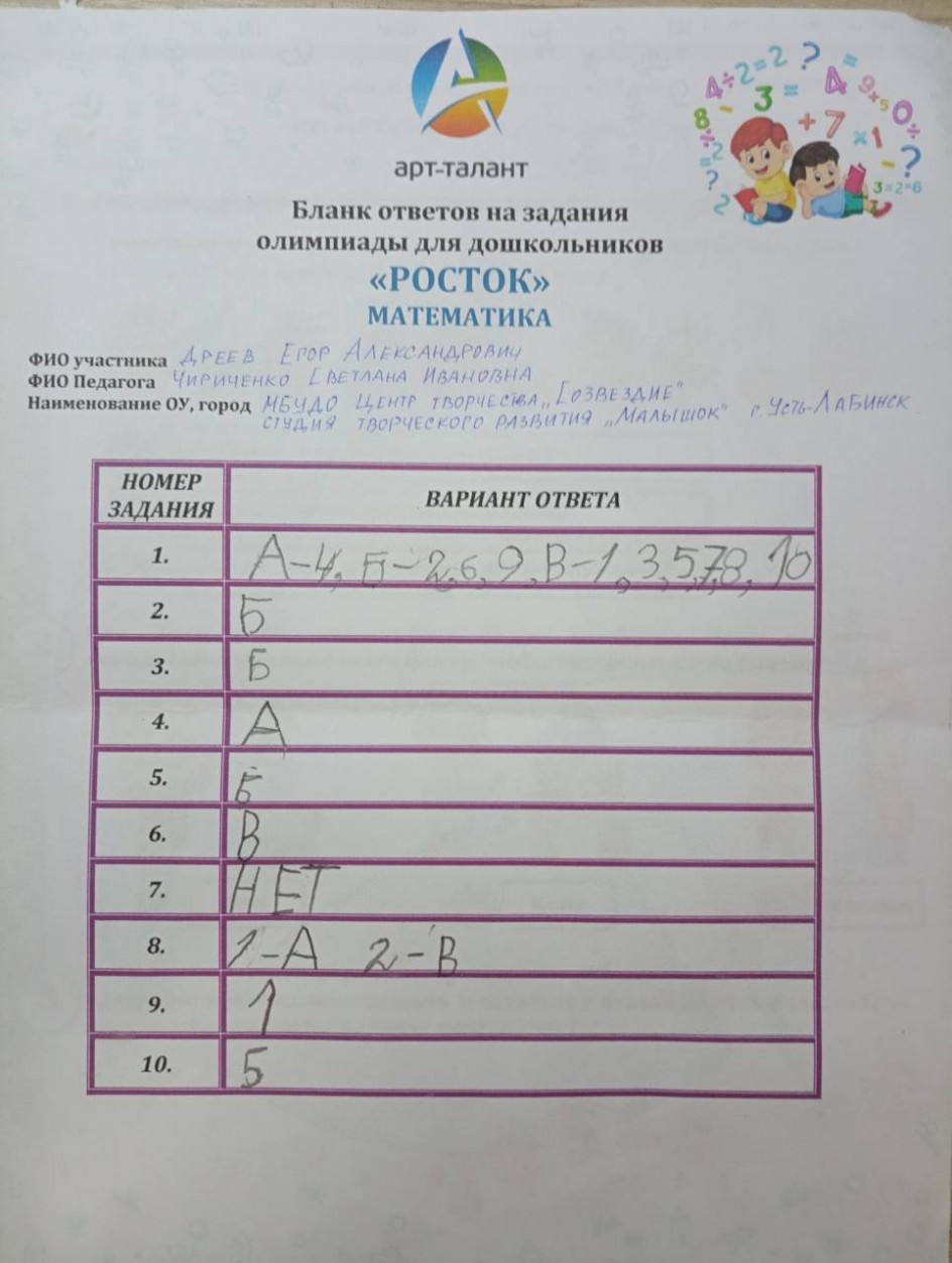 Дреев Егор Александрович, МБУДО Центр творчества "Созвездие", студия творческого развития "Малышок" г.Усть-Лабинск