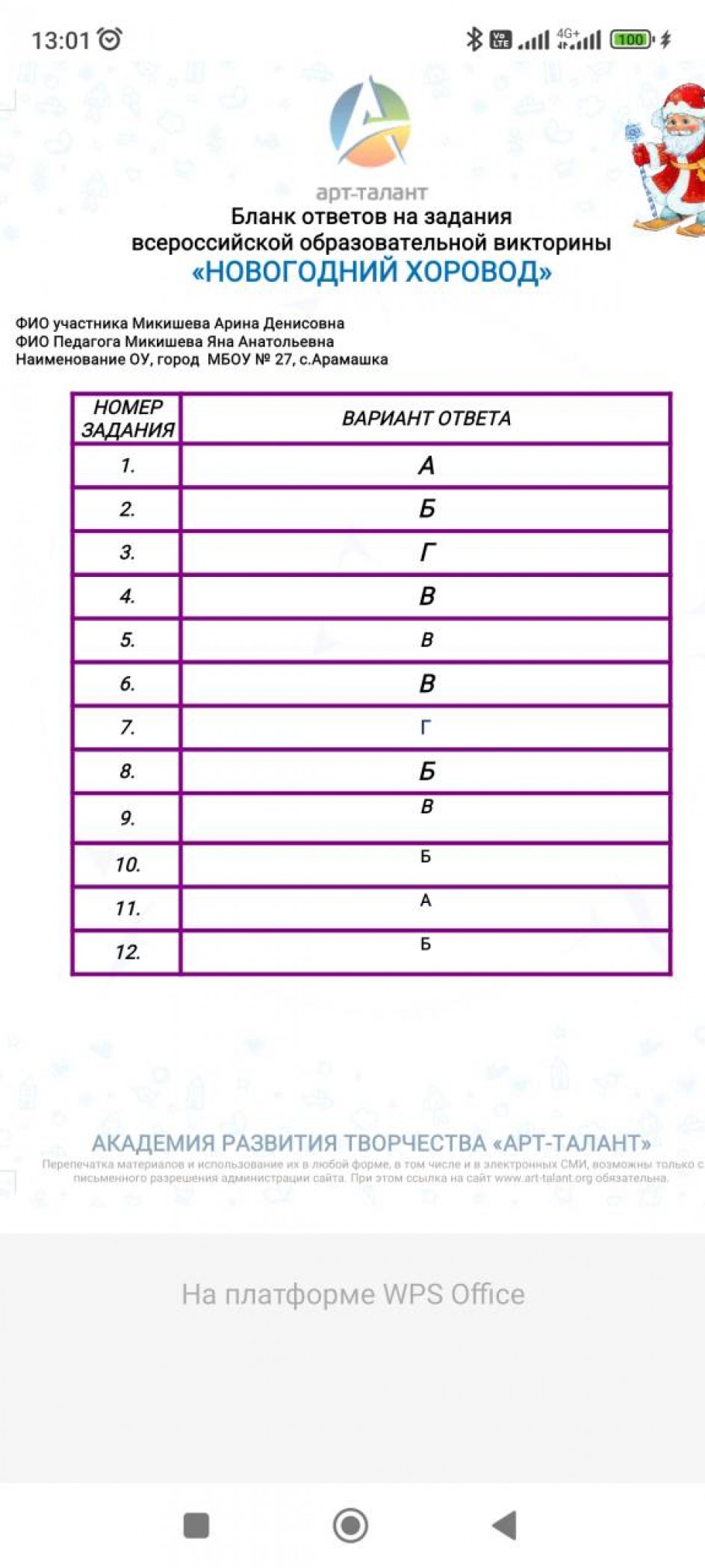 Микишева Арина Денисовна, МБОУ ООШ N°27 Свердловская область,с.Арамашка