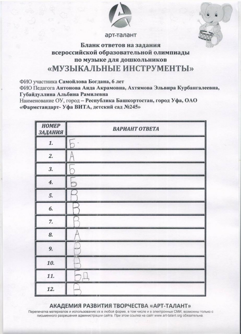 Самойлова Богдана, 6 лет, Республика Башкортостан, город Уфа, ОАО "Фармстандарт - Уфа ВИТА" детский сад №245