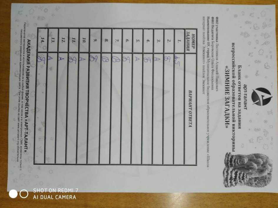 Лестников Алексей Павлович, МБОУ "Школа-интернат п. Эгвекинот"
