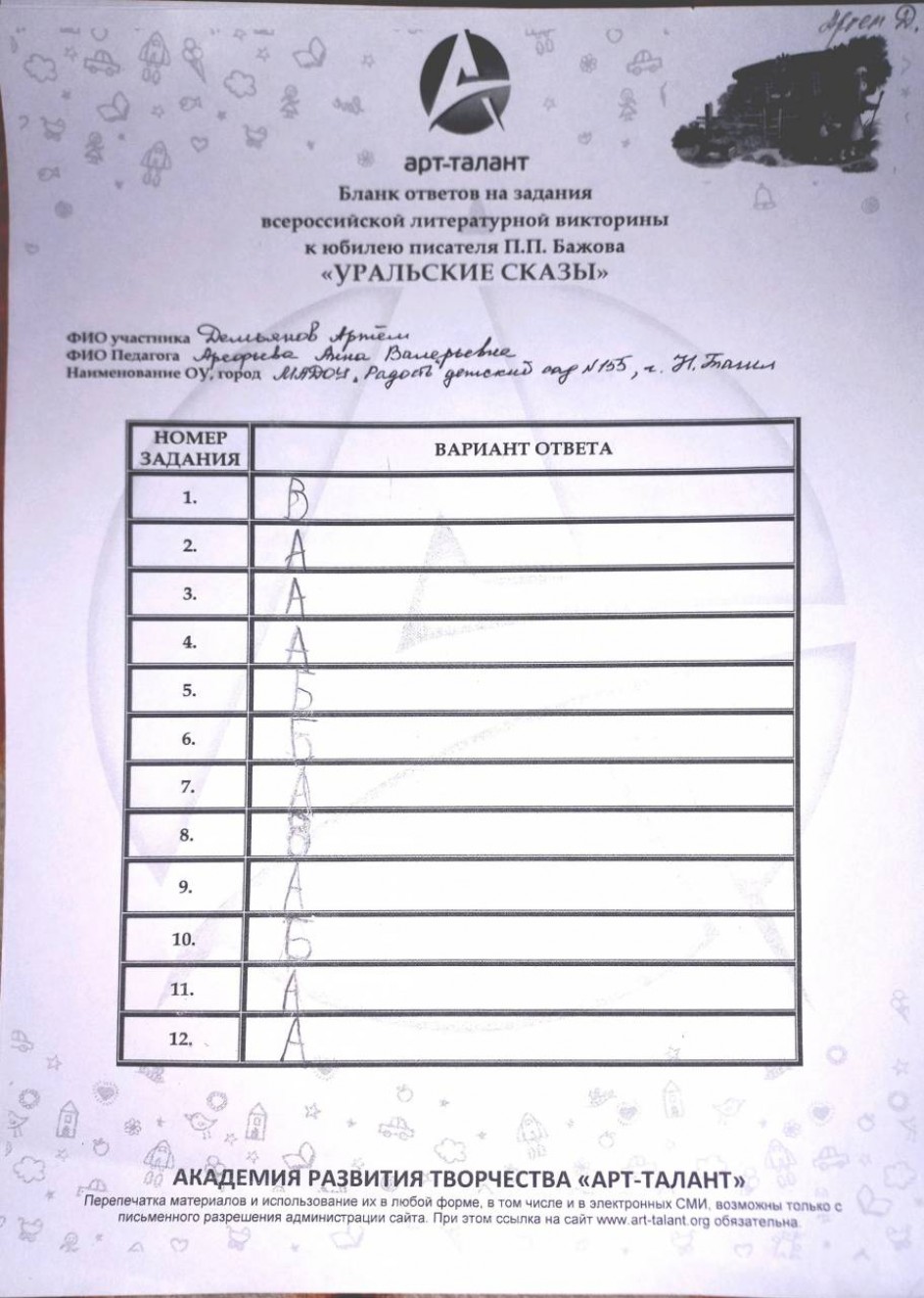 Демьянов Артём, МАДОУ "Радость" детский сад 155