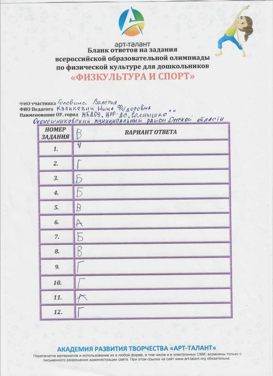 Головина Валерия, МБДОУ "ЦРР-ДС "Солнышко"" Оконешниковский муниципальный район Омской области