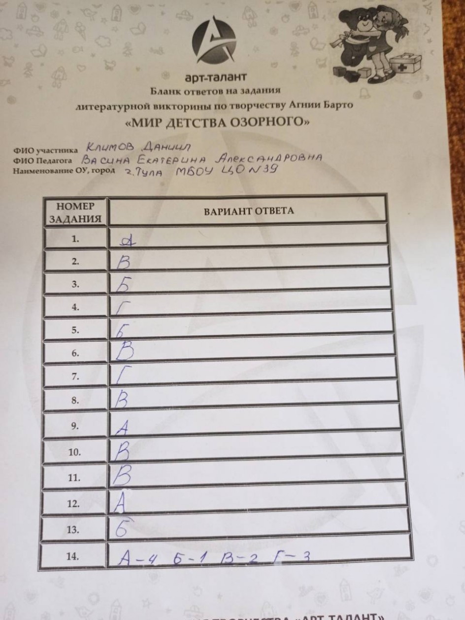 Климов Даниил Андреевич, МБОУ ЦО 39 г Тула