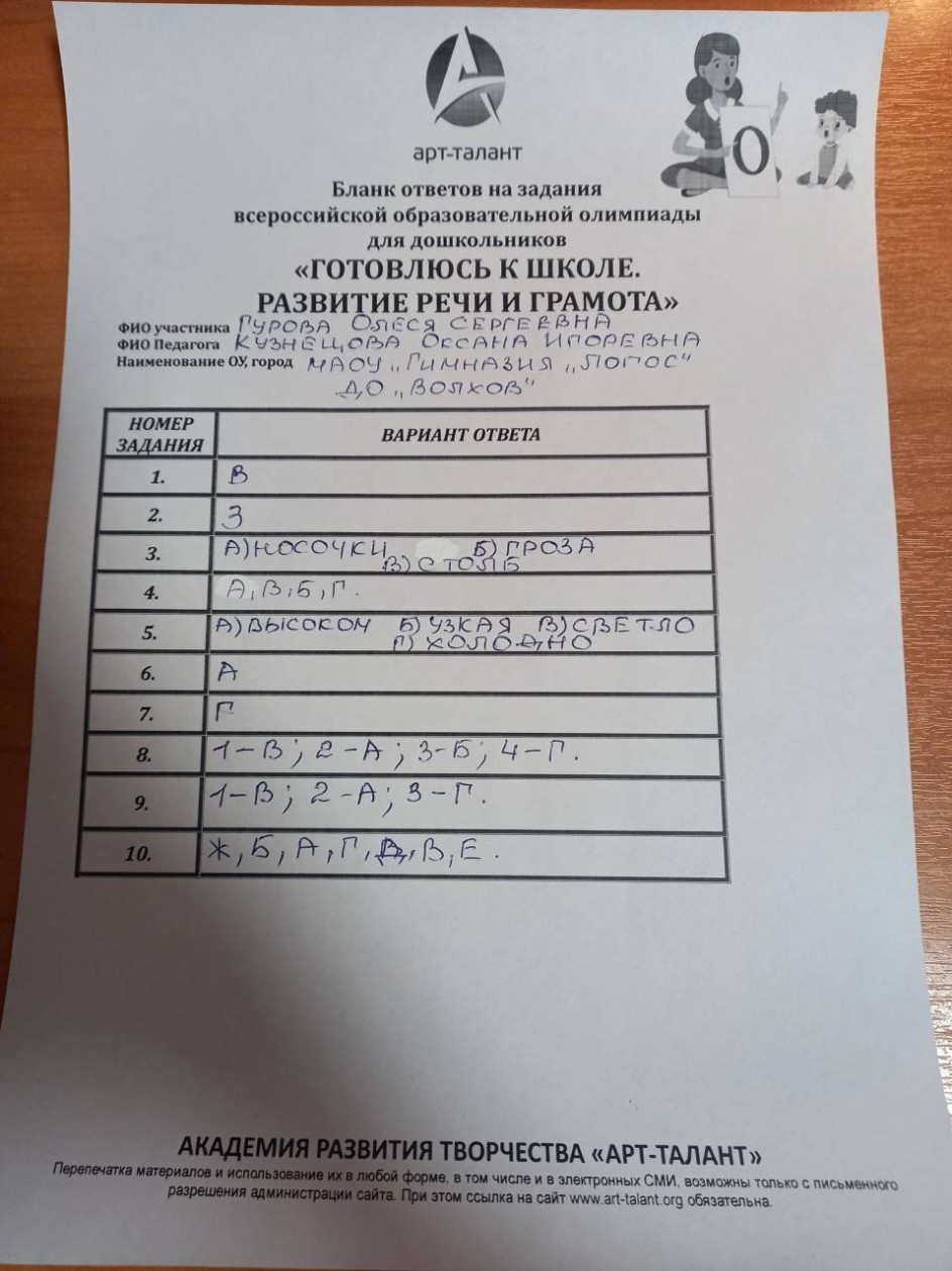 Гурова Олеся Сергеевна, Муниципальное Автономное Образовательное Учреждение "Гимназия"Логос" ДО "Волхов"