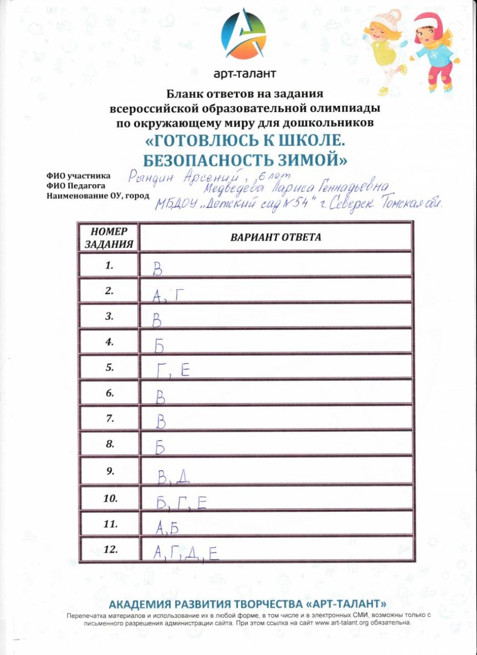 Рындин Арсений, МБДОУ «Детский сад № 54», г. Северск