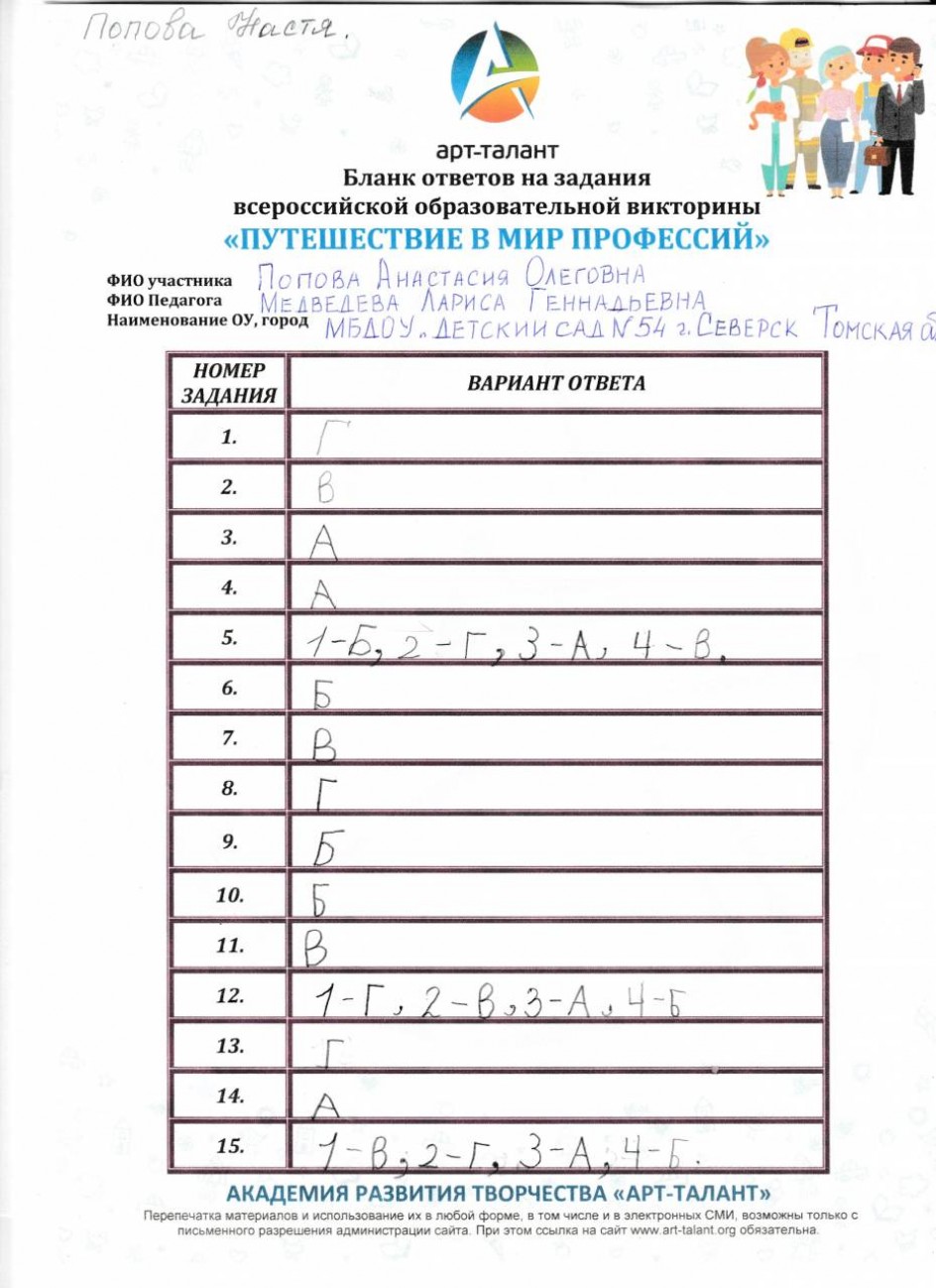 Попова Настя, МБДОУ «Детский сад № 54», г. Северск