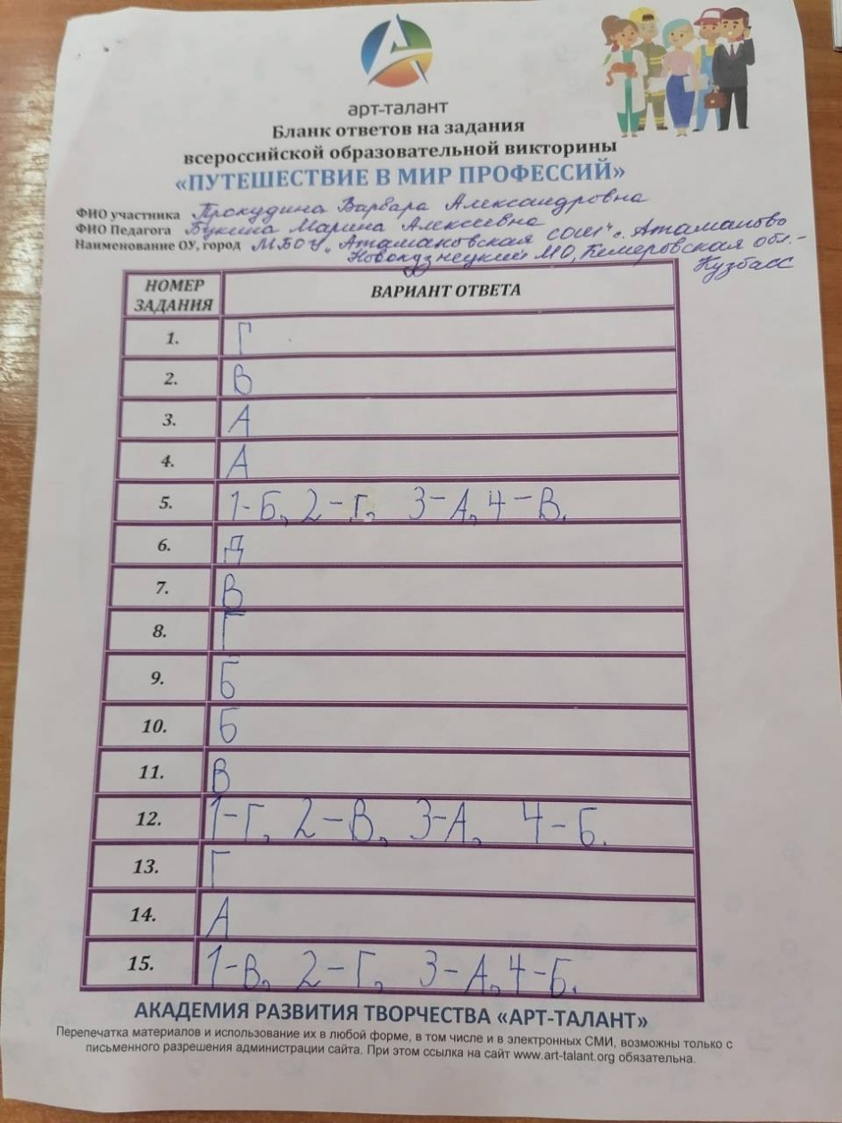 Прокудина Варвара Александровна, МБОУ "Атамановская СОШ"