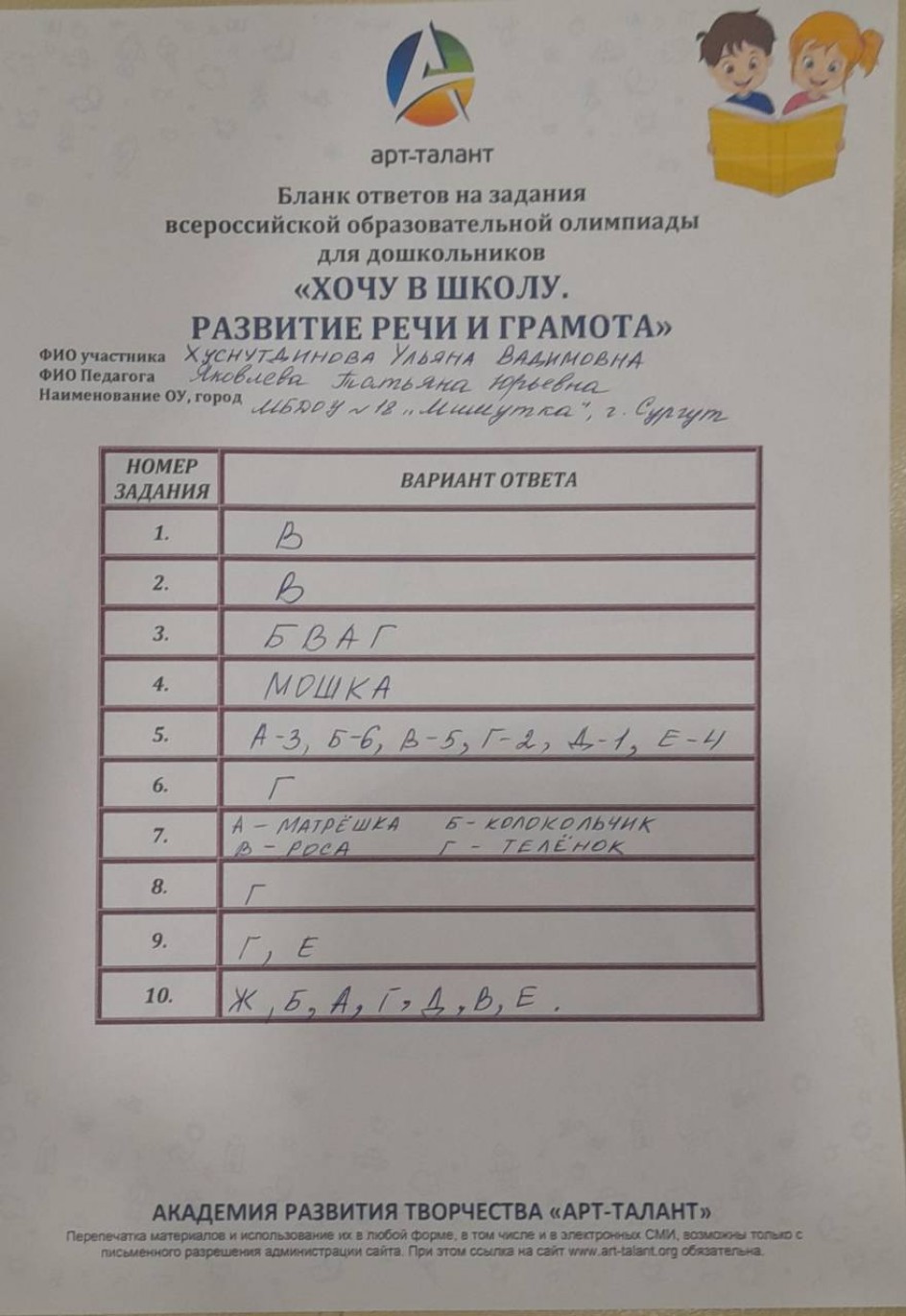 Хуснутдинова Ульяна Вадимовна, МБДОУ №18 "Мишутка", г. Сургут, Ханты-Мансийский автономный округ - Югра