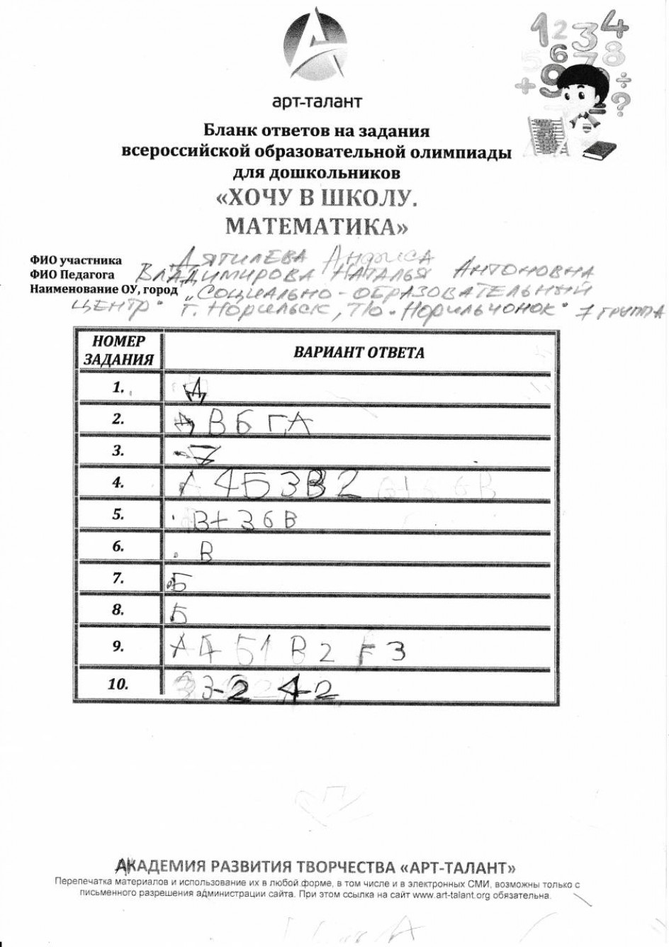 Дягилева Анфиса, "Социально-образовательный центр" г.Норильск, т/о "Норильчонок" 7 группа