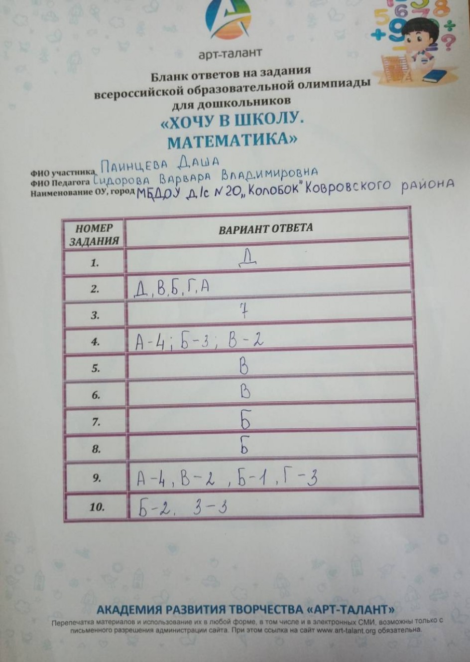 Паинцева Даша, МБДОУ д.с 20"Колобок" Ковровского района