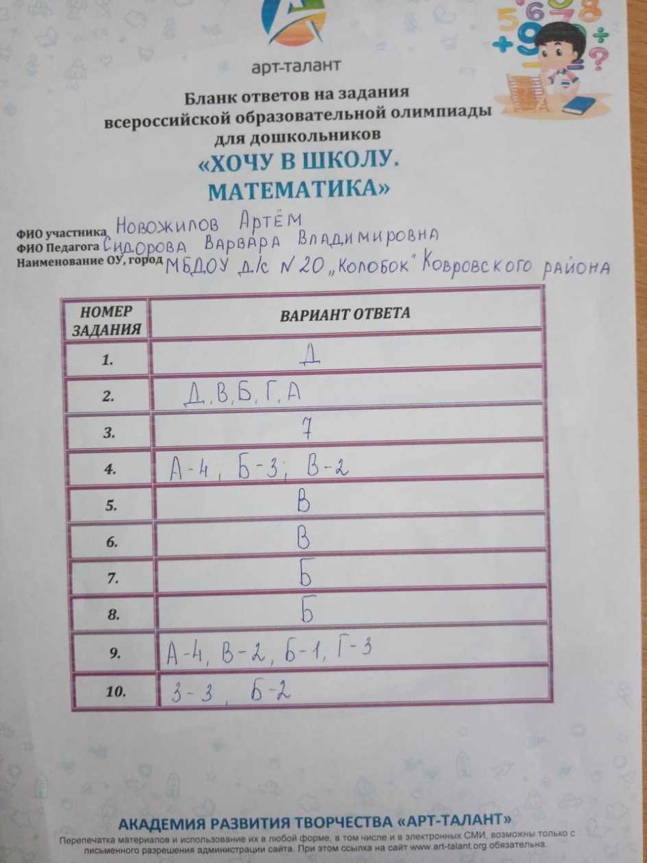 Новожилов Артём, МБДОУ д.с №20 "Колобок", Ковровского района