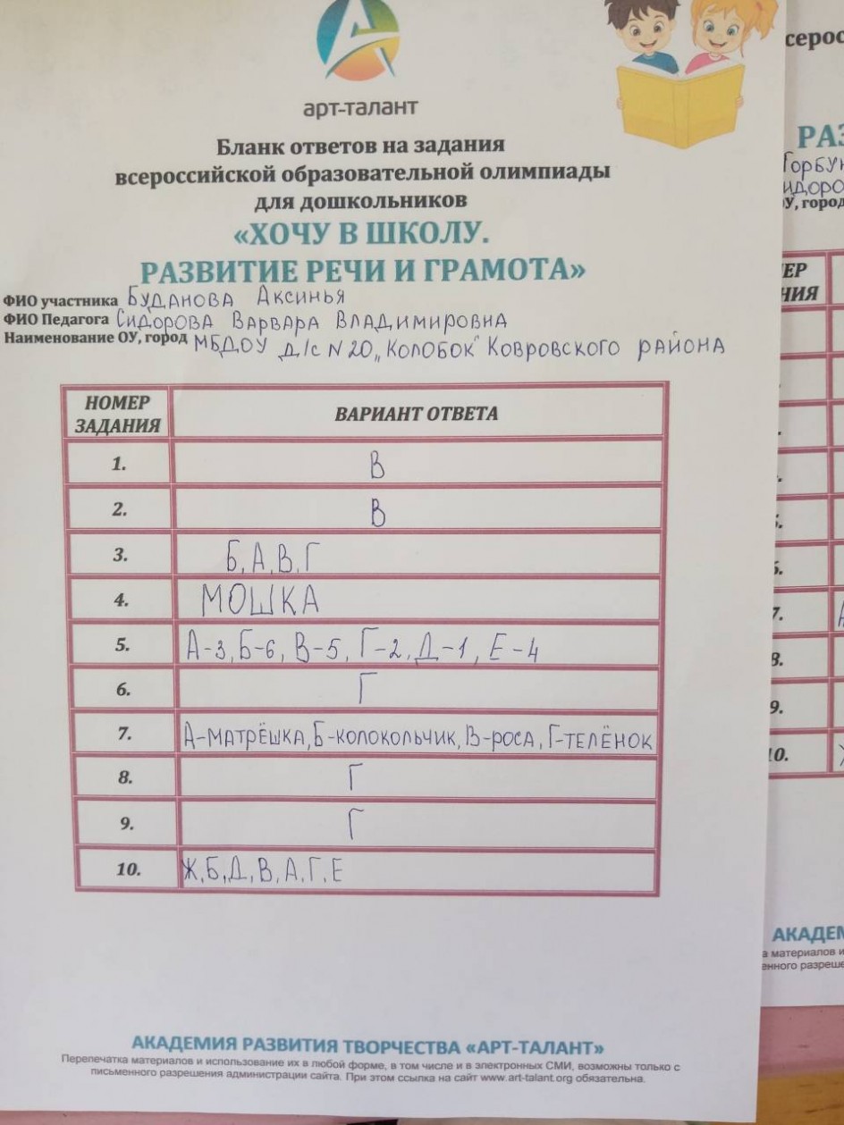 Буданова Аксинья, МБДОУ д.с 20"Колобок"Ковровского района
