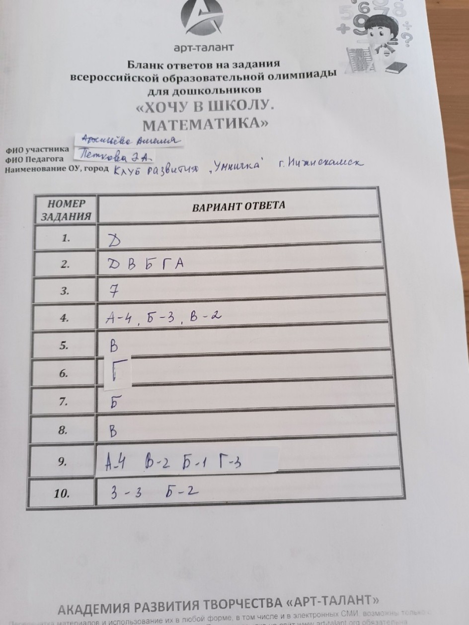 Артемьева Амелия, Клуб развития "Умничка" г. Нижнекамск