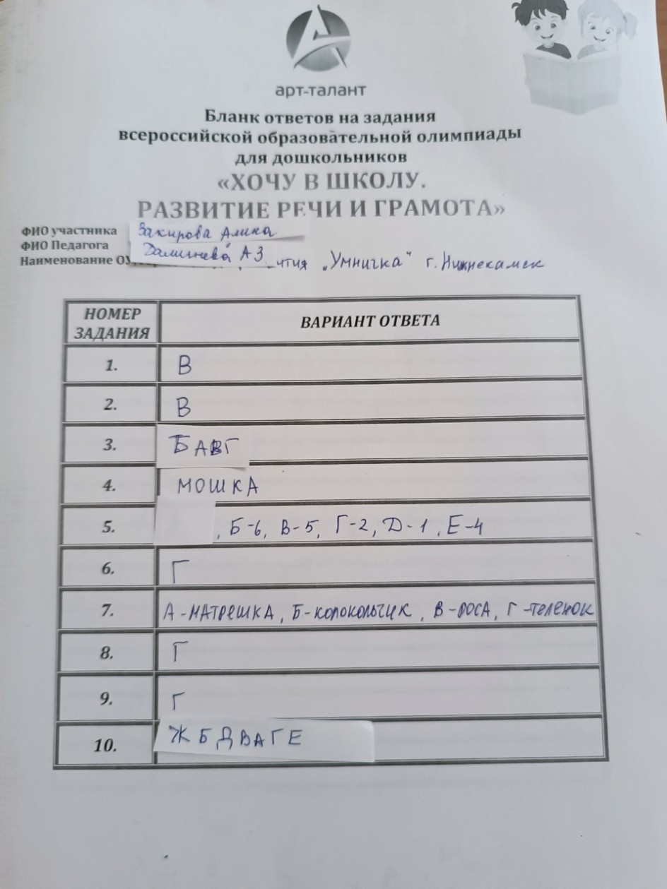 Закирова Алина, Клуб развития "Умничка" г. Нижнекамск