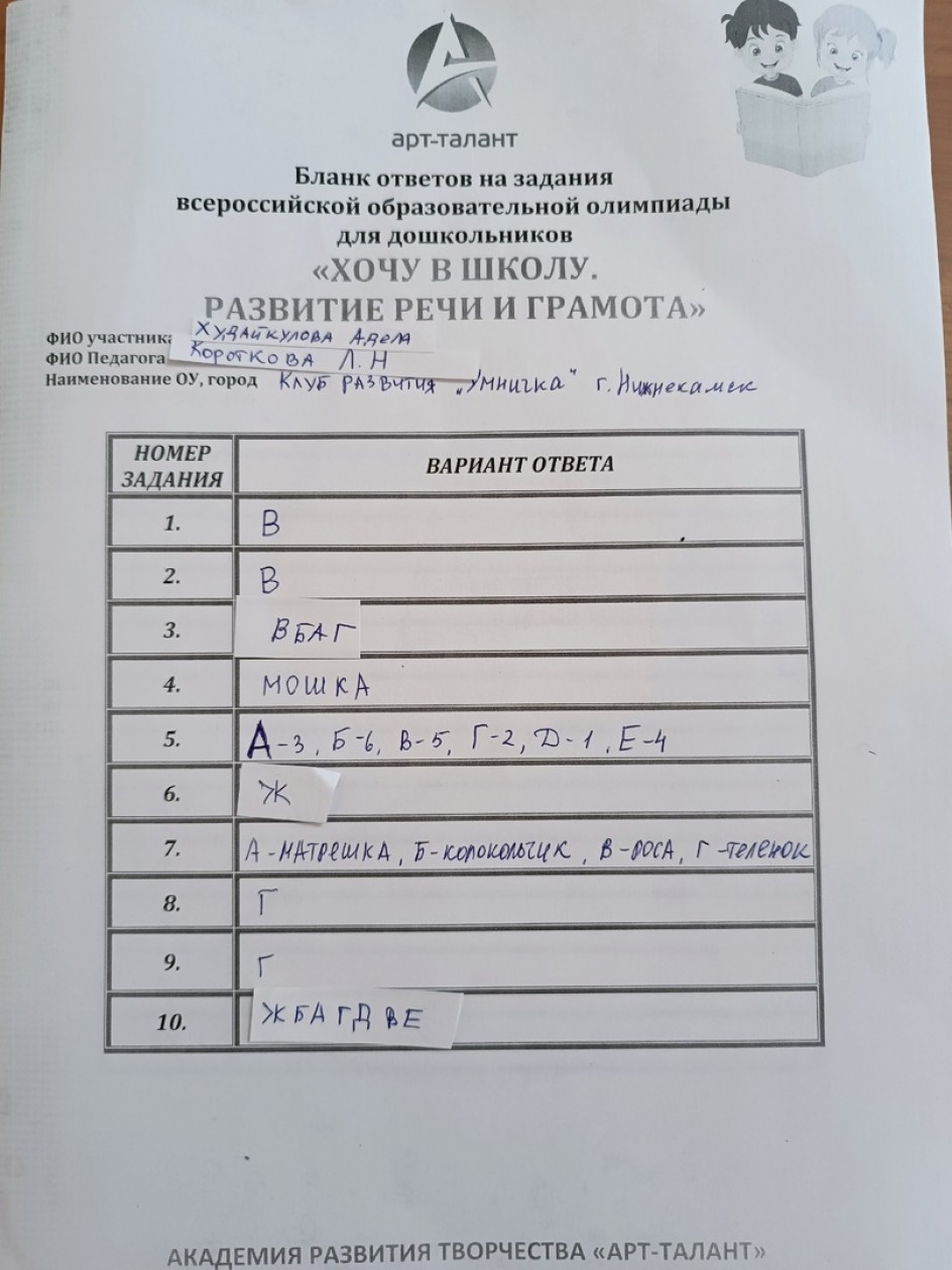 Худайкулова Аделя, Клуб развития "Умничка" г. Нижнекамск