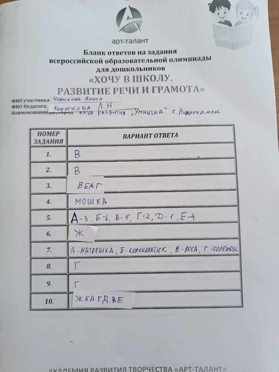 Новикова Алиса, Клуб развития "Умничка" г. Нижнекамск