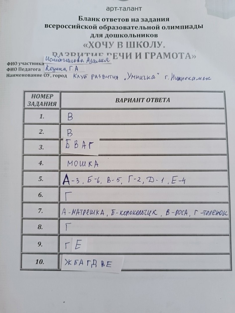 Исмагилова Азалия, Клуб развития "Умничка" г. Нижнекамск