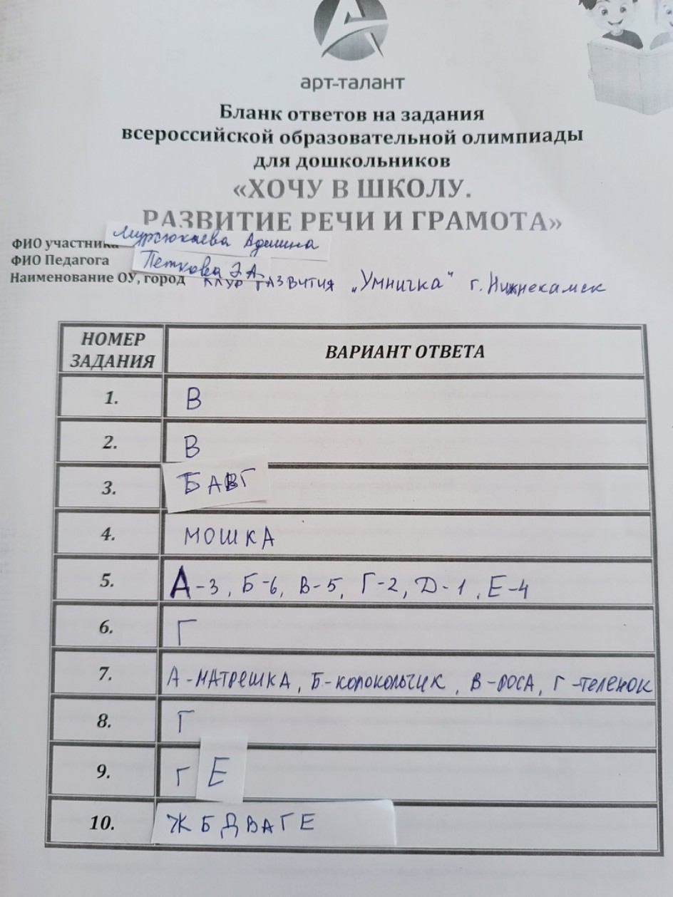 Мурсюкаева Аделина, Клуб развития "Умничка" г. Нижнекамск