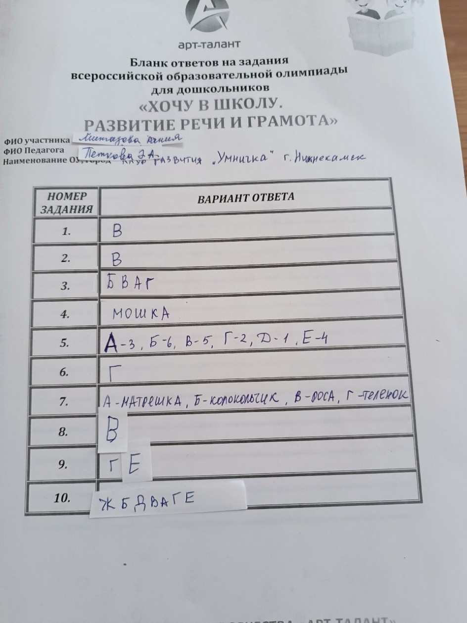 Мингазова Рания, Клуб развития "Умничка" г. Нижнекамск