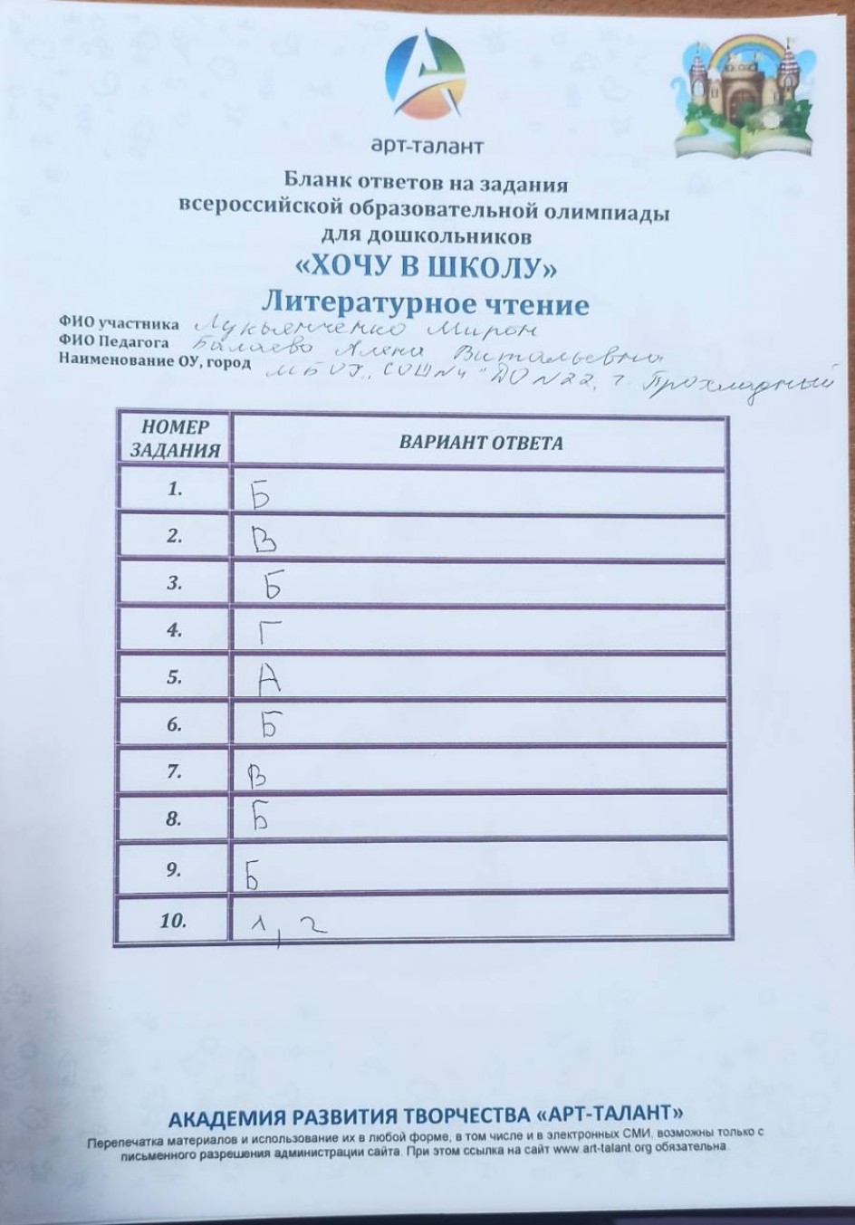 Лукъянченко Мирон Владимирович, МБОУ "СОШ 4" ДО 22