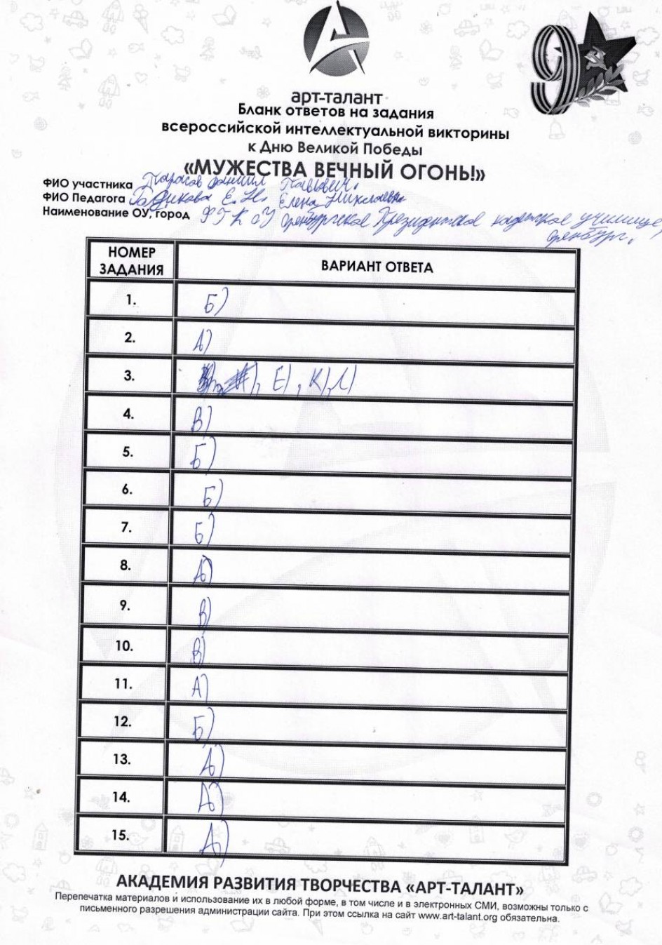 Тарасов Даниил Павлович, ФГКОУ "Оренбургское президентское кадетское училище"