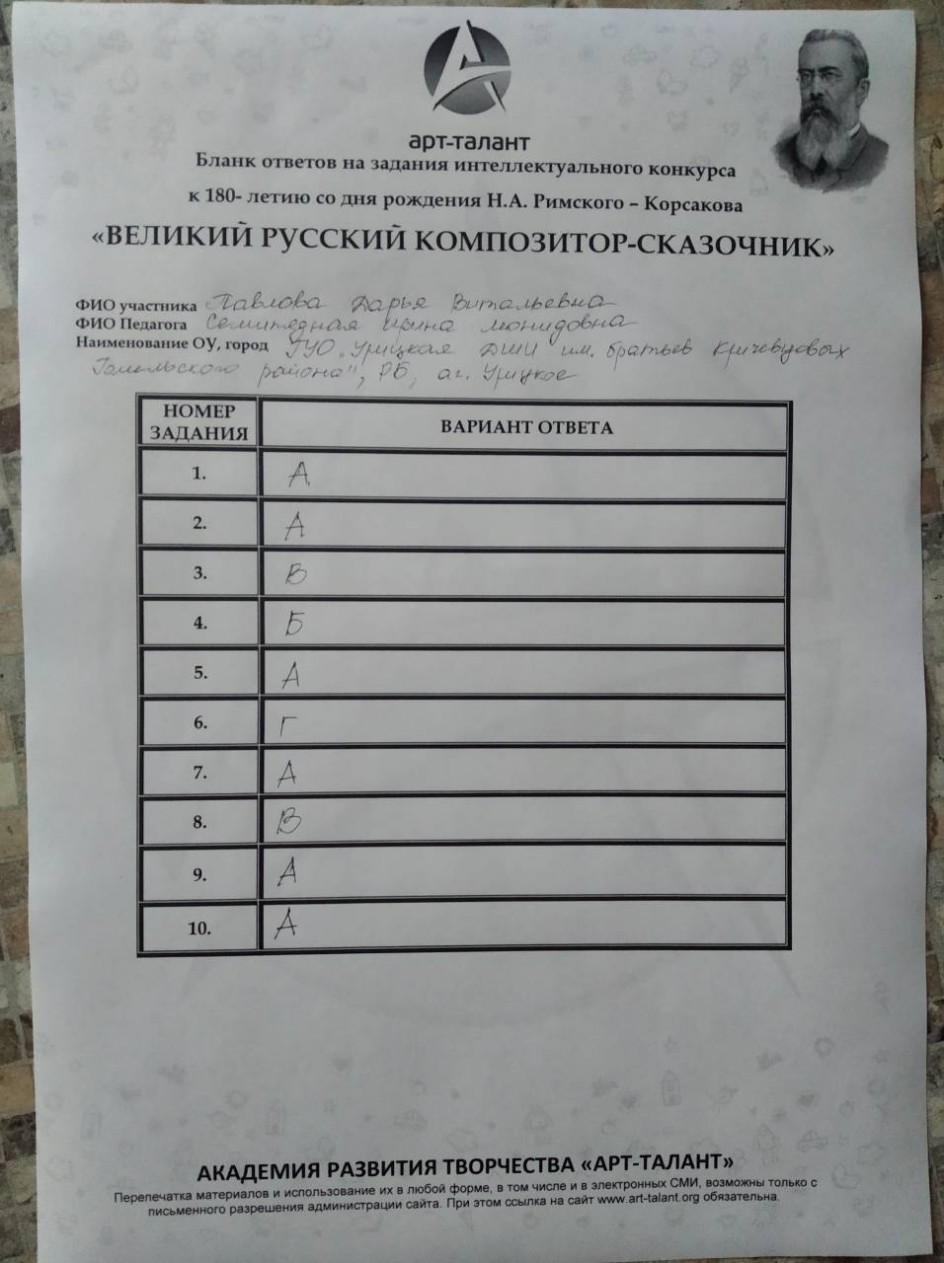 Павлова Дарья, ГУО "Урицкая ДШИ имени братьев Кричевцовых Гомельского района"