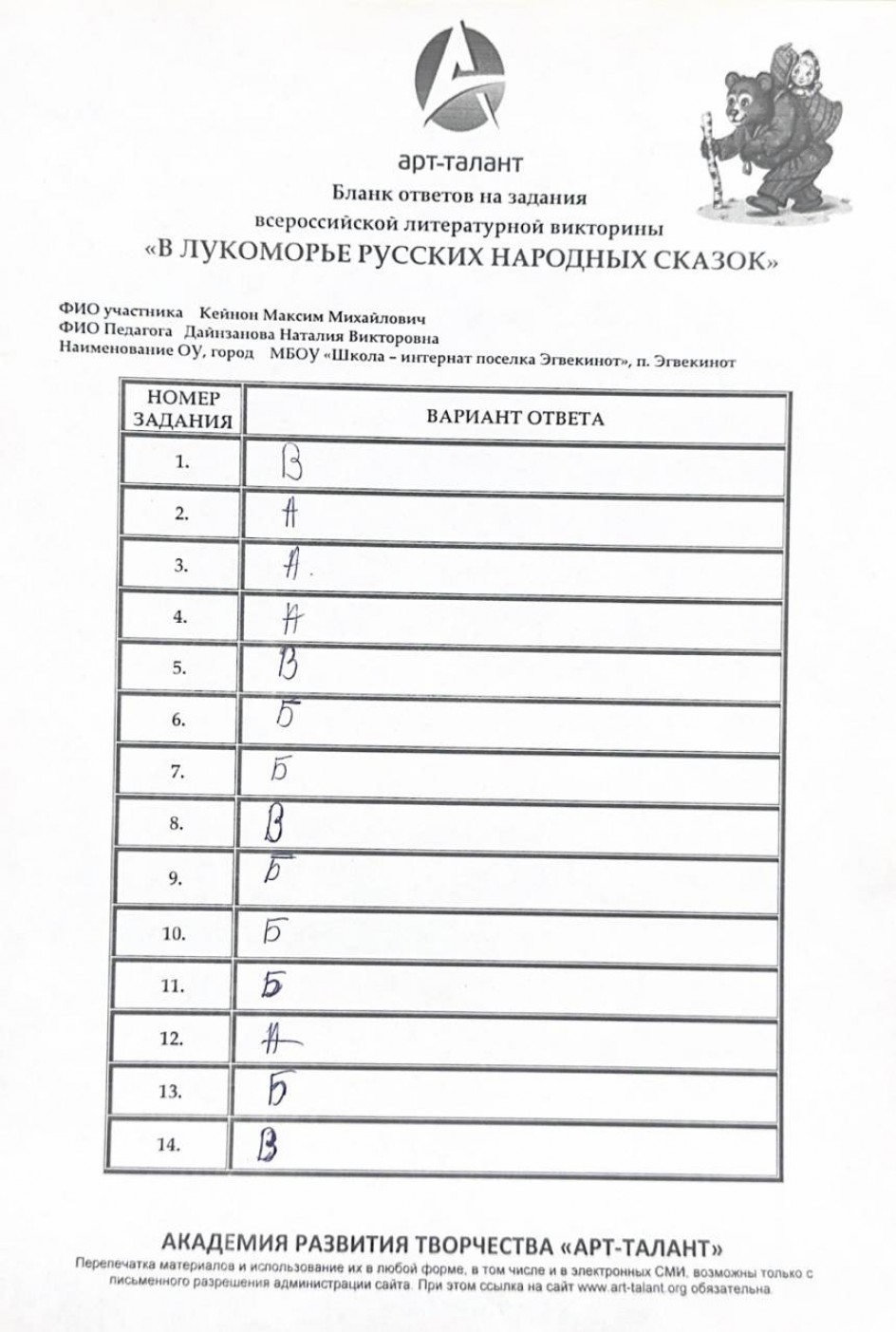 Кейнон Максим Михайлович, МБОУ «Школа-интернат п. Эгвекинот»