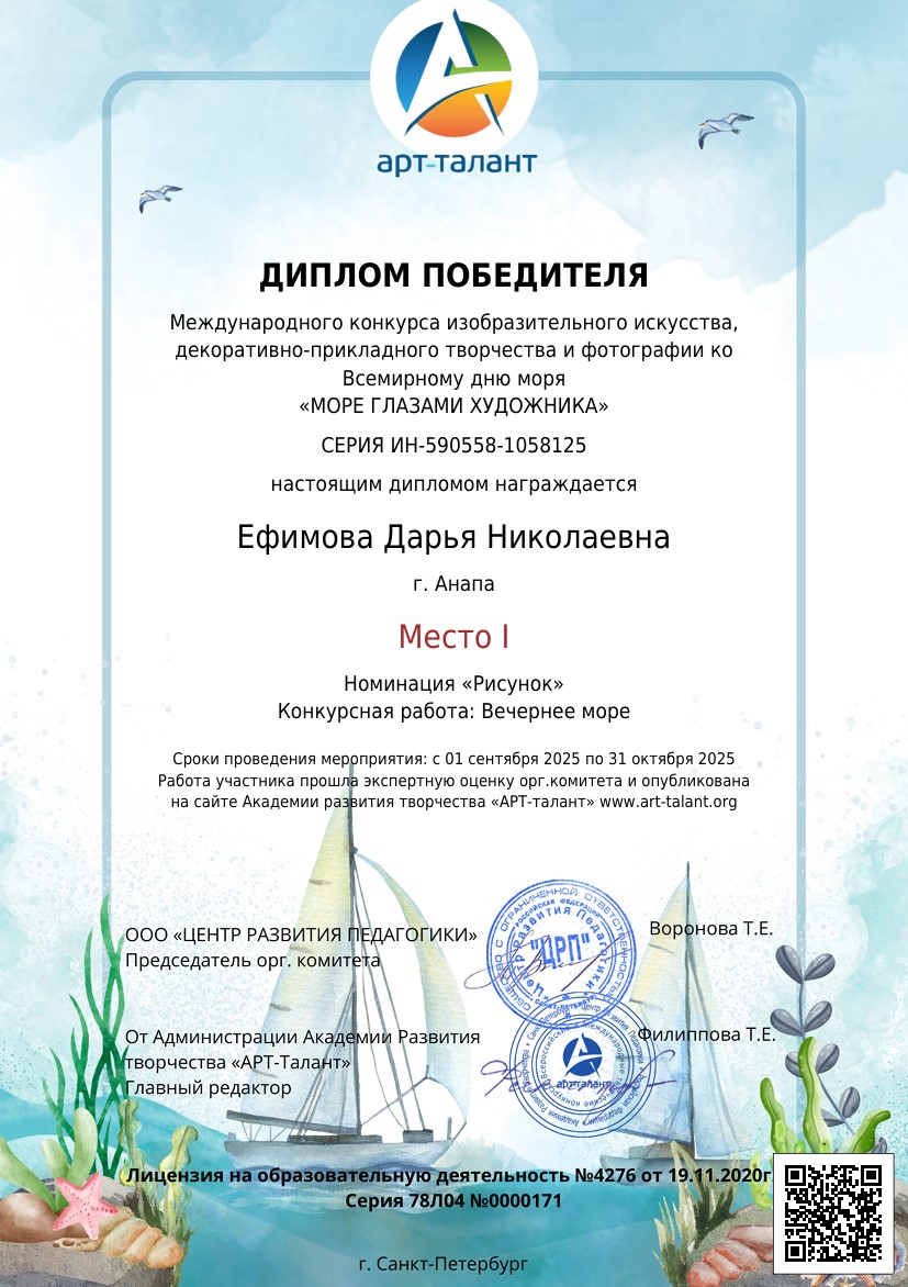 Международный конкурс изобразительного искусства, декоративно-прикладного творчества и фотографии ко Всемирному дню моря «МОРЕ ГЛАЗАМИ ХУДОЖНИКА»