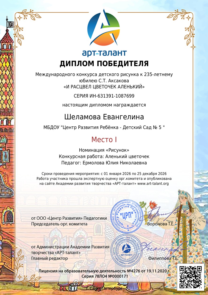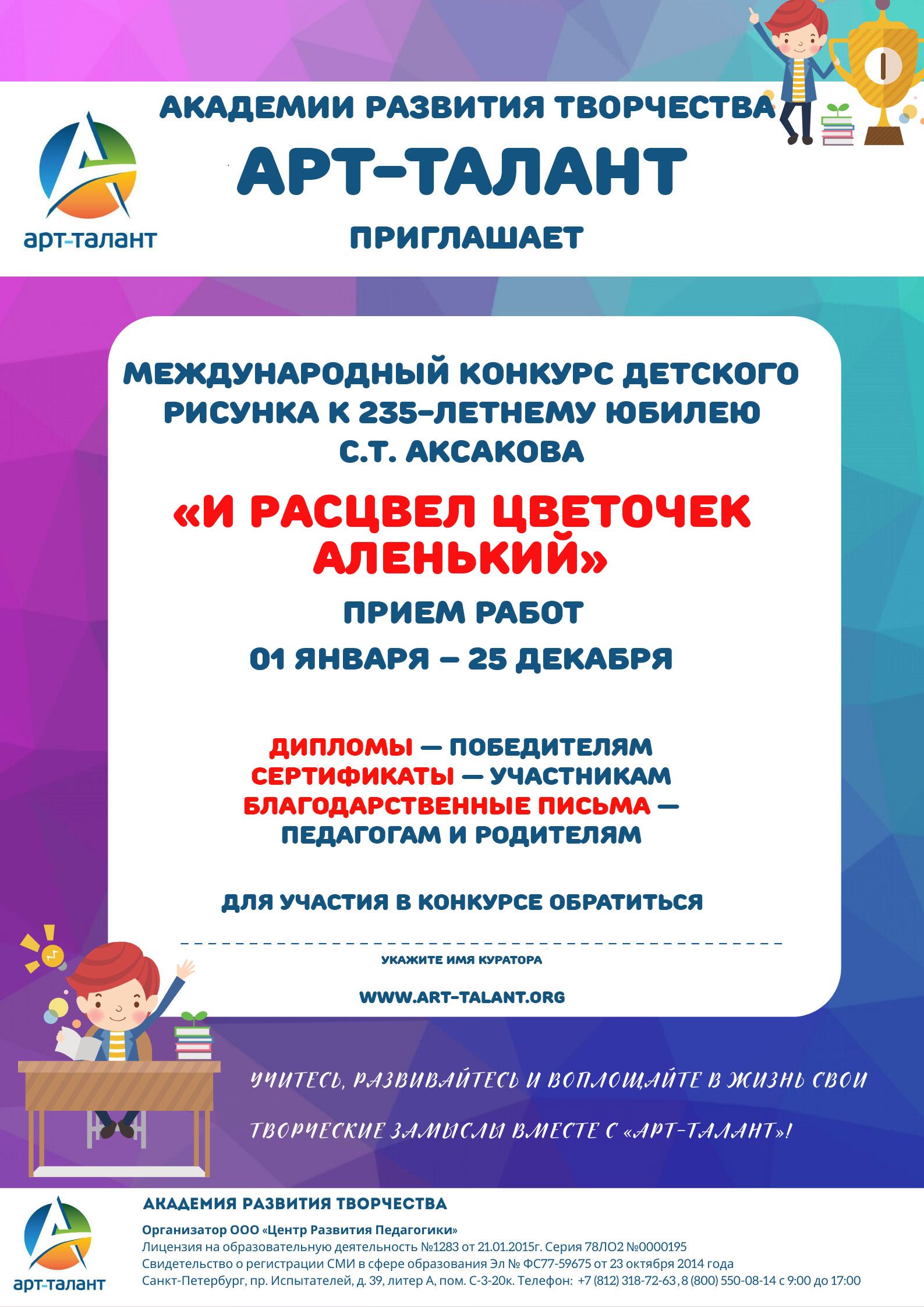 Международный конкурс детского рисунка к 235-летнему юбилею С.Т. Аксакова «И РАСЦВЕЛ ЦВЕТОЧЕК АЛЕНЬКИЙ»