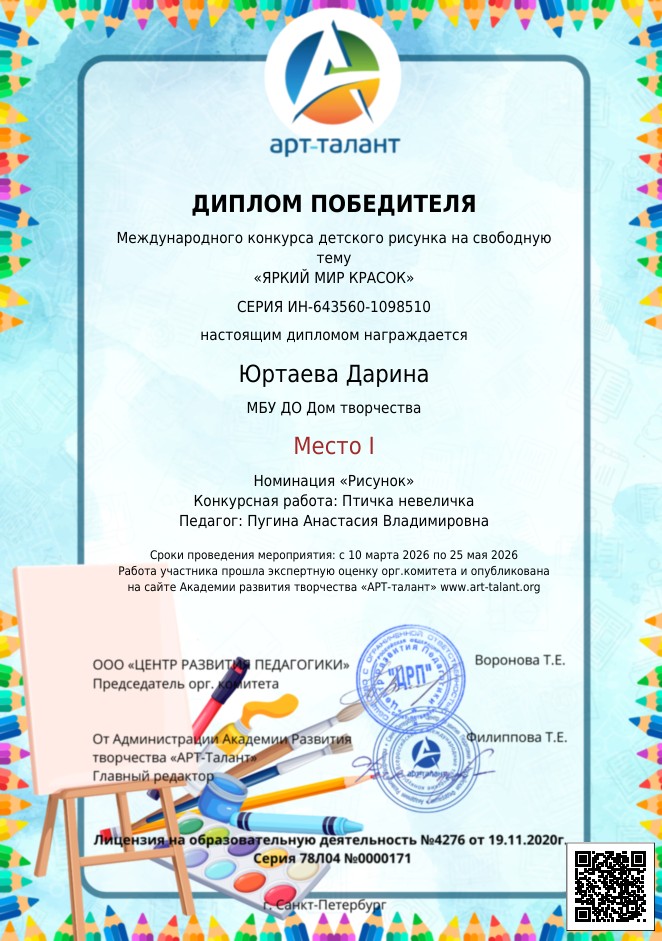 Международный конкурс детского рисунка на свободную тему «ЯРКИЙ МИР КРАСОК»