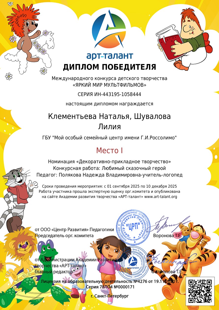 Международный конкурс детского творчества «ЯРКИЙ МИР МУЛЬТФИЛЬМОВ»