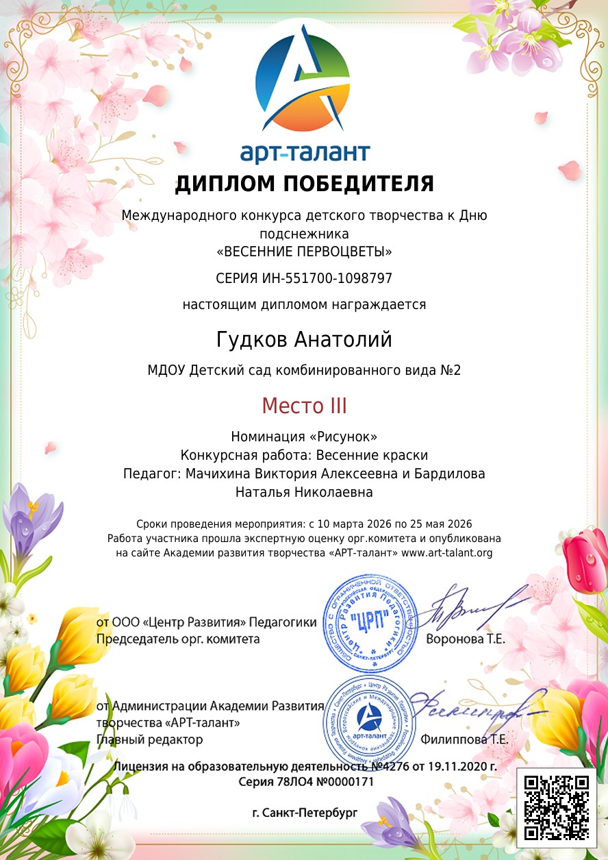Международный конкурс детского творчества к Дню подснежника «ВЕСЕННИЕ ПЕРВОЦВЕТЫ»