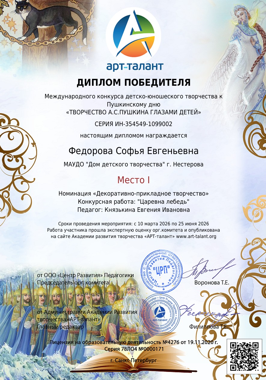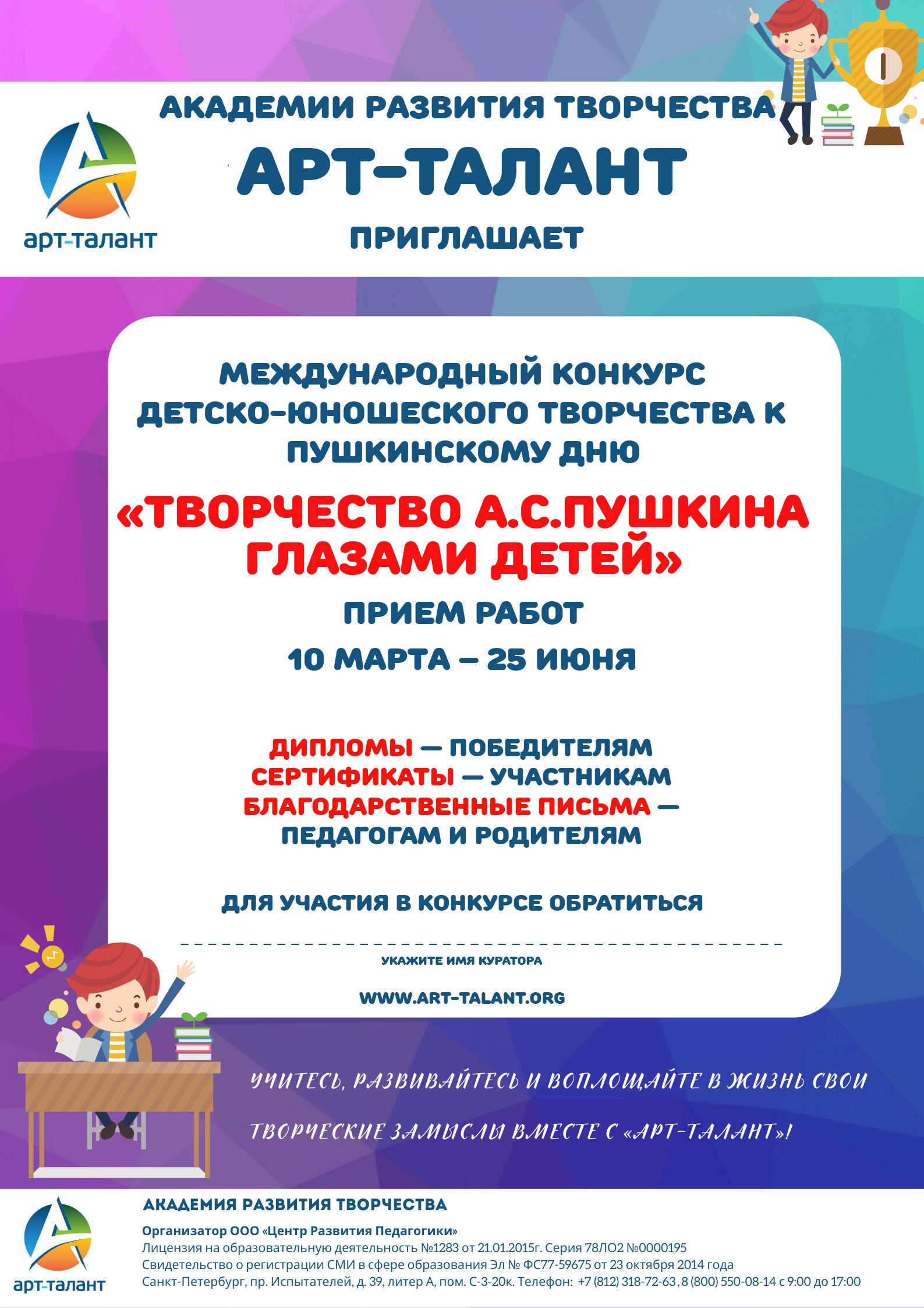 Международный конкурс детско-юношеского творчества к Пушкинскому дню «ТВОРЧЕСТВО А.С.ПУШКИНА ГЛАЗАМИ ДЕТЕЙ»