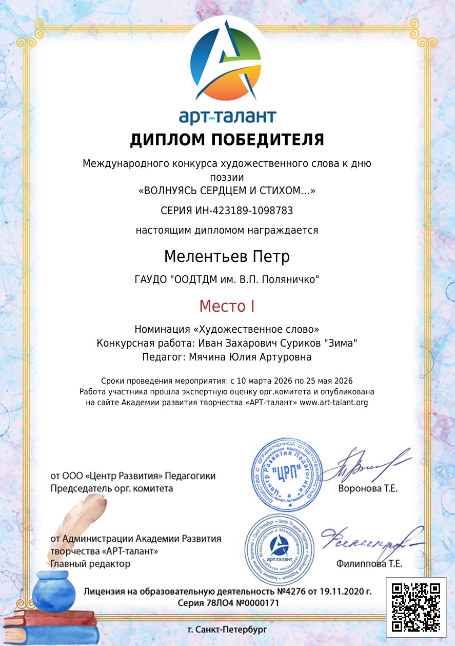 Международный конкурс художественного слова к дню поэзии «ВОЛНУЯСЬ СЕРДЦЕМ И СТИХОМ…»