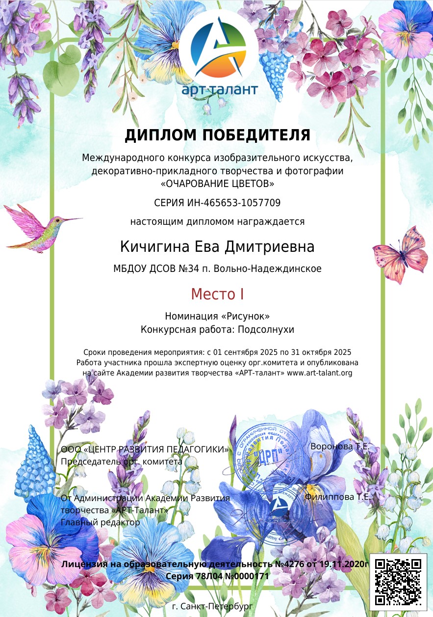 Международный конкурс изобразительного искусства, декоративно-прикладного творчества и фотографии «ОЧАРОВАНИЕ ЦВЕТОВ»