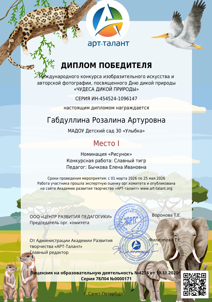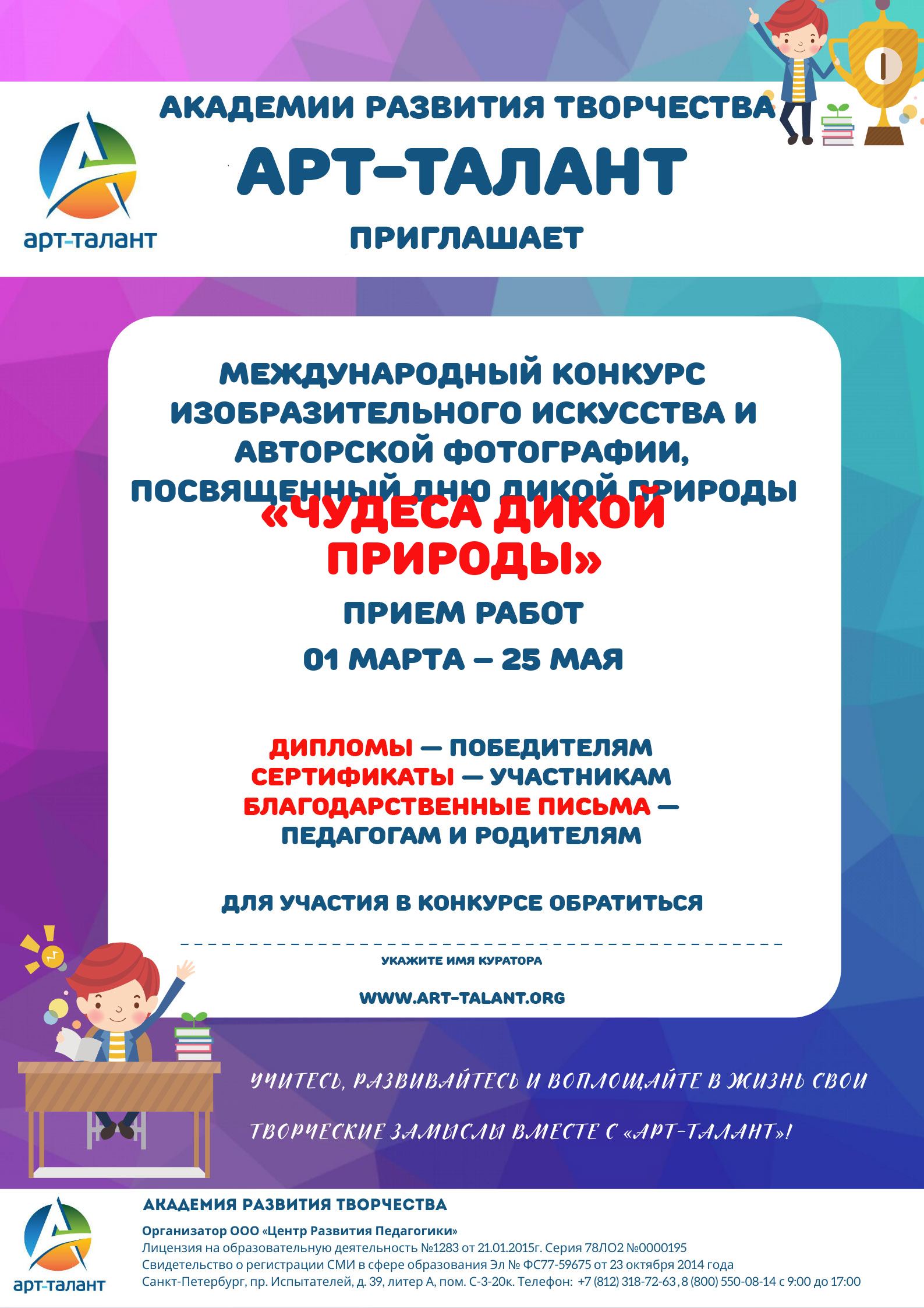Международный конкурс изобразительного искусства и авторской фотографии, посвященный Дню дикой природы «ЧУДЕСА ДИКОЙ ПРИРОДЫ»