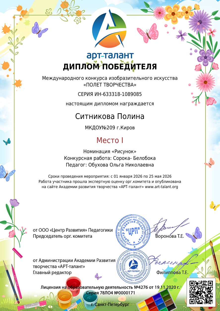 Международный конкурс изобразительного искусства «ПОЛЕТ ТВОРЧЕСТВА» (свободная тема)