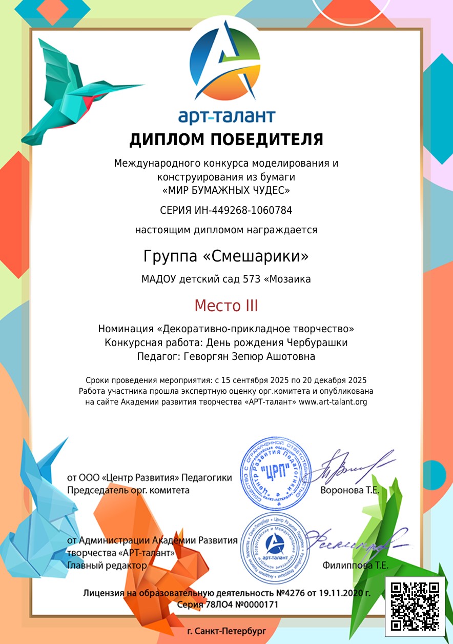 Международный конкурс моделирования и конструирования из бумаги «МИР БУМАЖНЫХ ЧУДЕС»