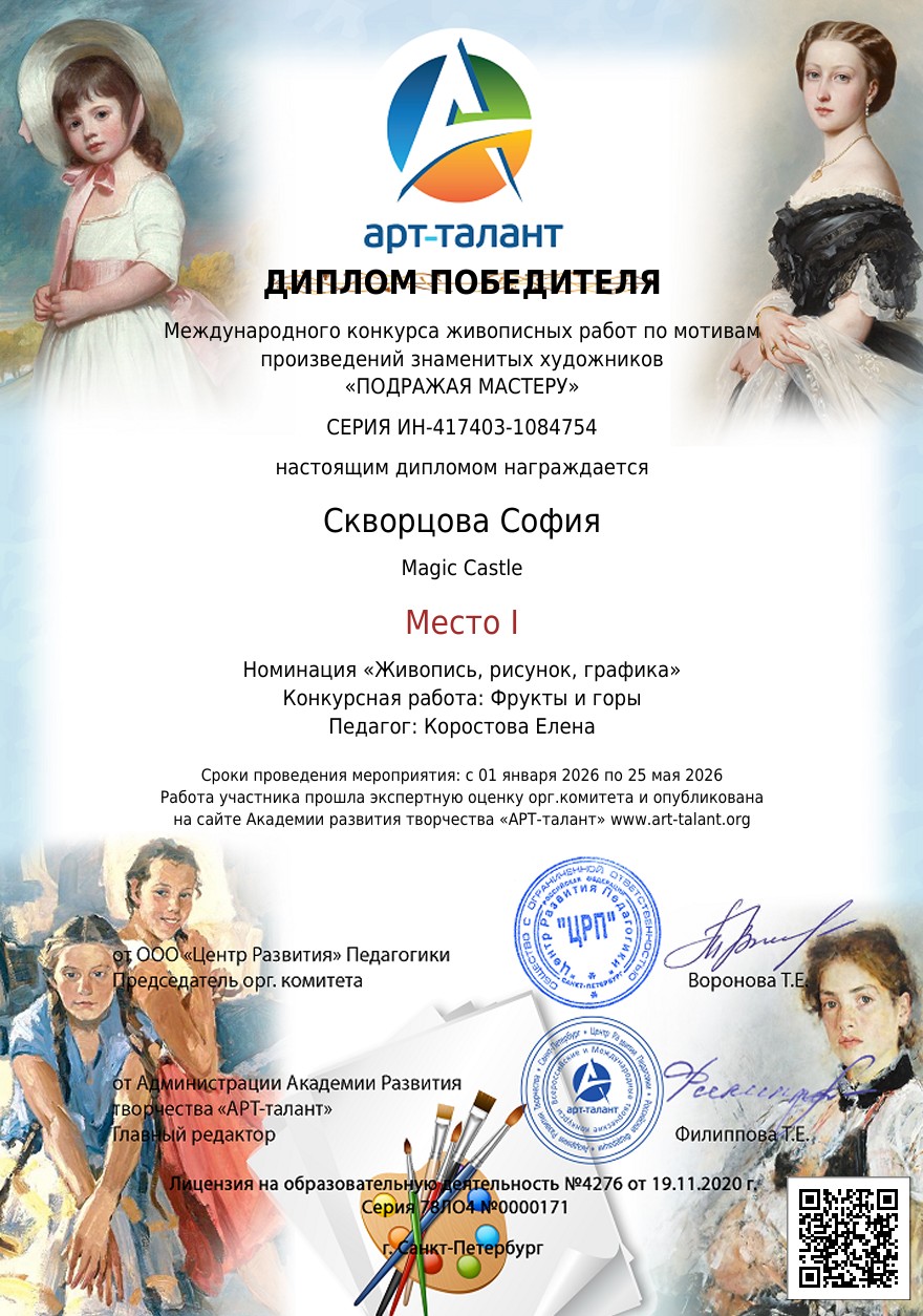 Международный конкурс живописных работ по мотивам произведений знаменитых художников «ПОДРАЖАЯ МАСТЕРУ»